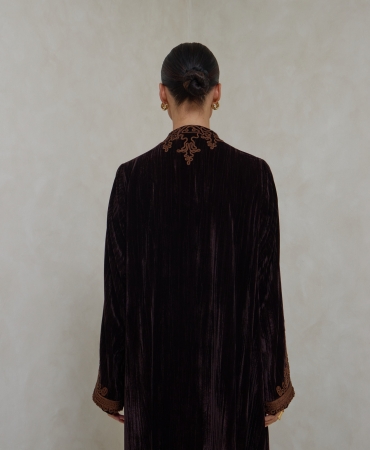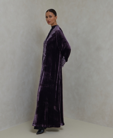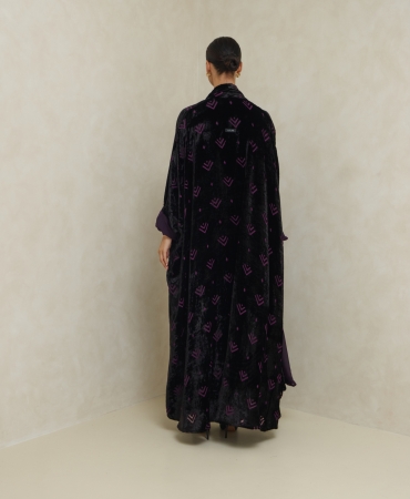 BHD 160.000A luxurious abaya crafted from premium velvet silk, designed with elegant Moroccan-inspired touches. It features authentic hand-embroidered Moroccan craftsmanship, showcasing intricate details that make each piece truly unique and artistically refined. عباية فاخرة مصنوعة من المخمل الحريري عالي الجودة، بتصميم مستوحى من اللمسات المغربية الراقية. تتميز بتطريز يدوي متقن يعكس الحِرفة المغربية الأصيلة ويضيف جمالًا خاصًا وفريدًا لكل قطعة