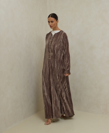BHD 84.000Elevate your style with this stunning velvet silk abaya, featuring exquisite geometric patterns that radiate sophistication and elegance. Crafted for both luxury and comfort, this abaya is perfect for special occasions or anytime you want to make a memorable statement. تميزي بإطلالة لا تُنسى مع هذه العباية المصنوعة من الحرير المخملي الفاخر، والمزينة بنقوش هندسية دقيقة تعكس الأناقة والرقي. تصميمها…