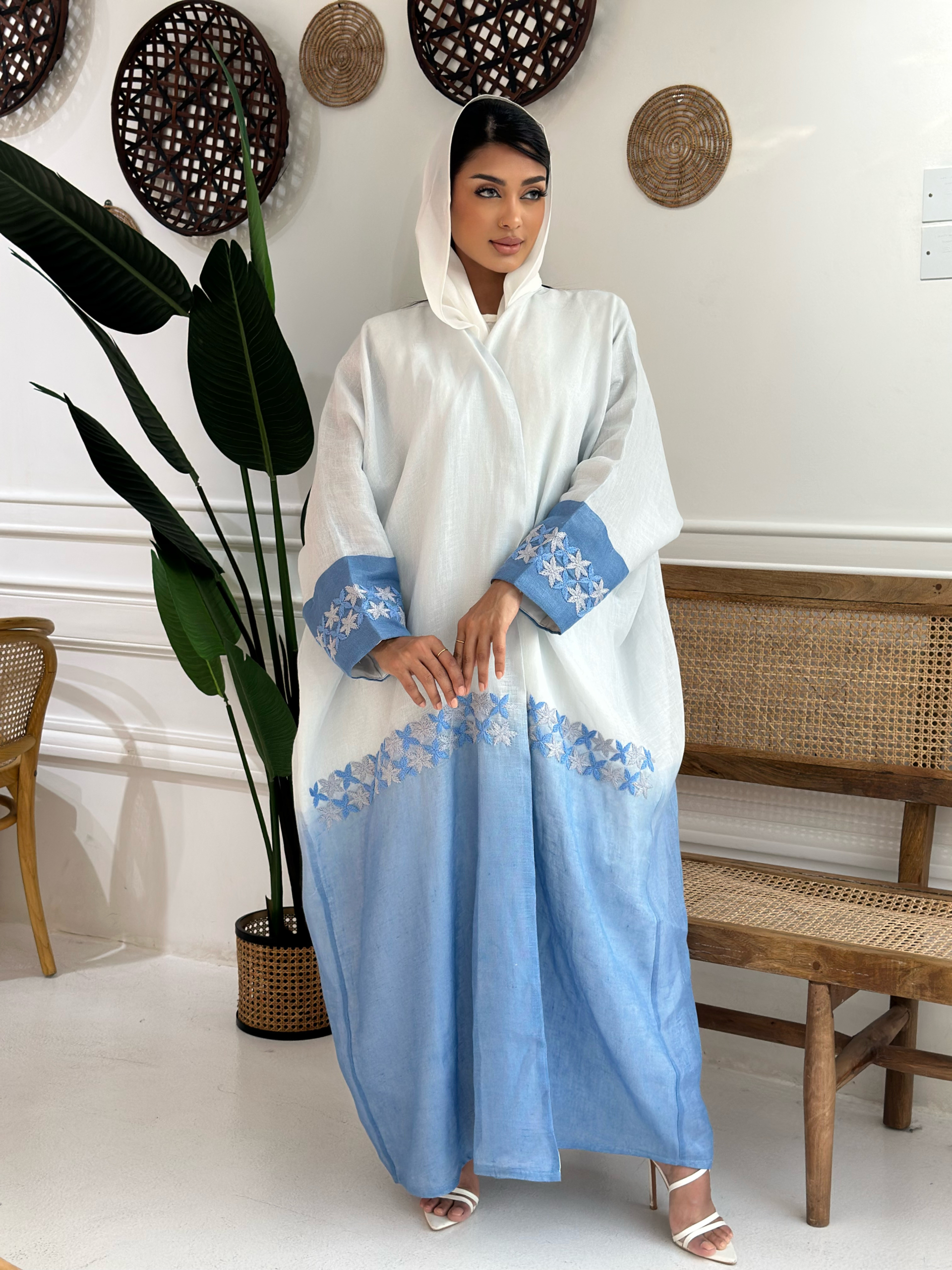 BHD 130.000stylish and trendy with grey linen abaya with hand work details.
