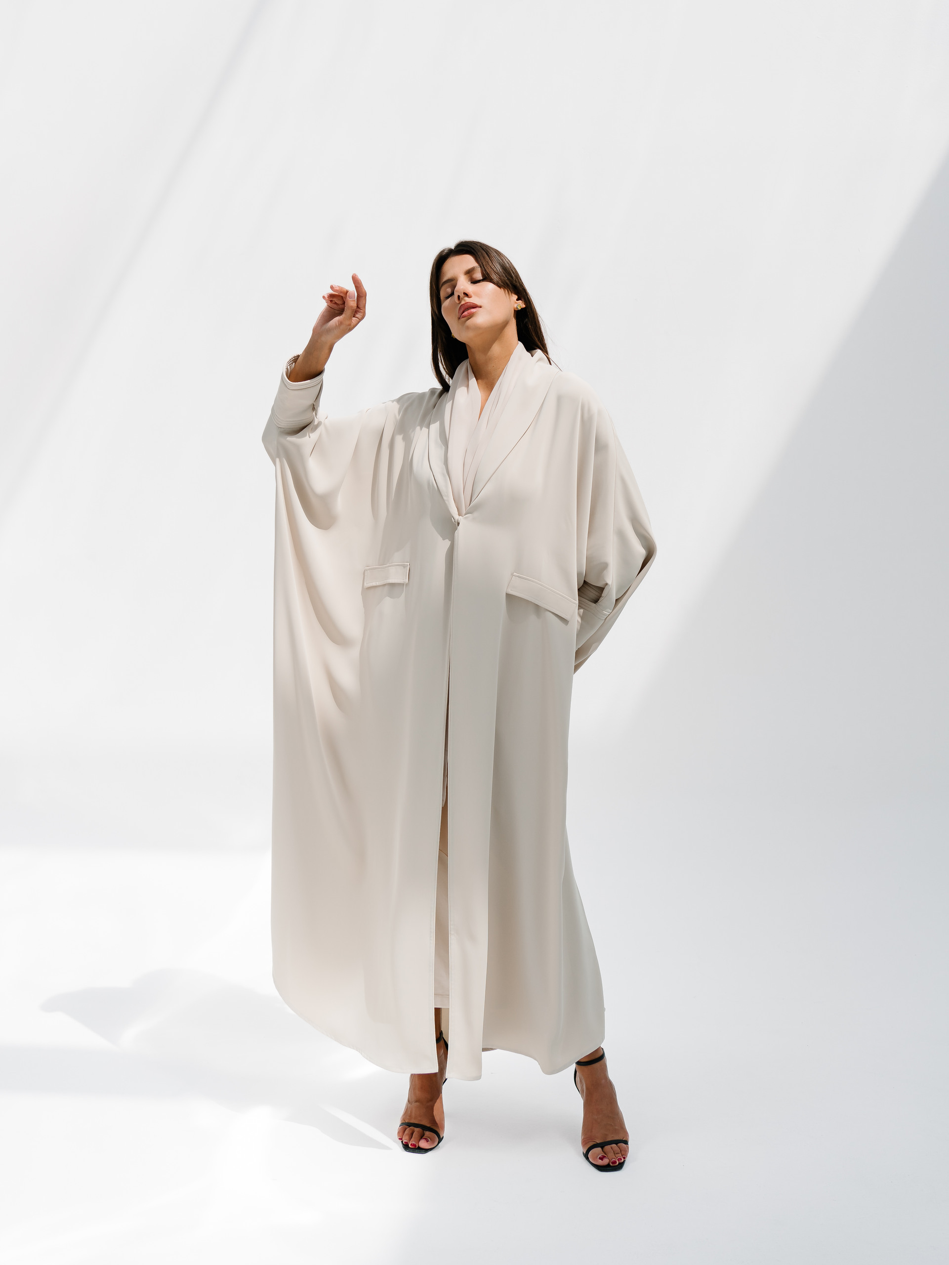 BHD 100.000Begie abaya with white and Begie colors needle work on the sleeves end, the scafe color is begie