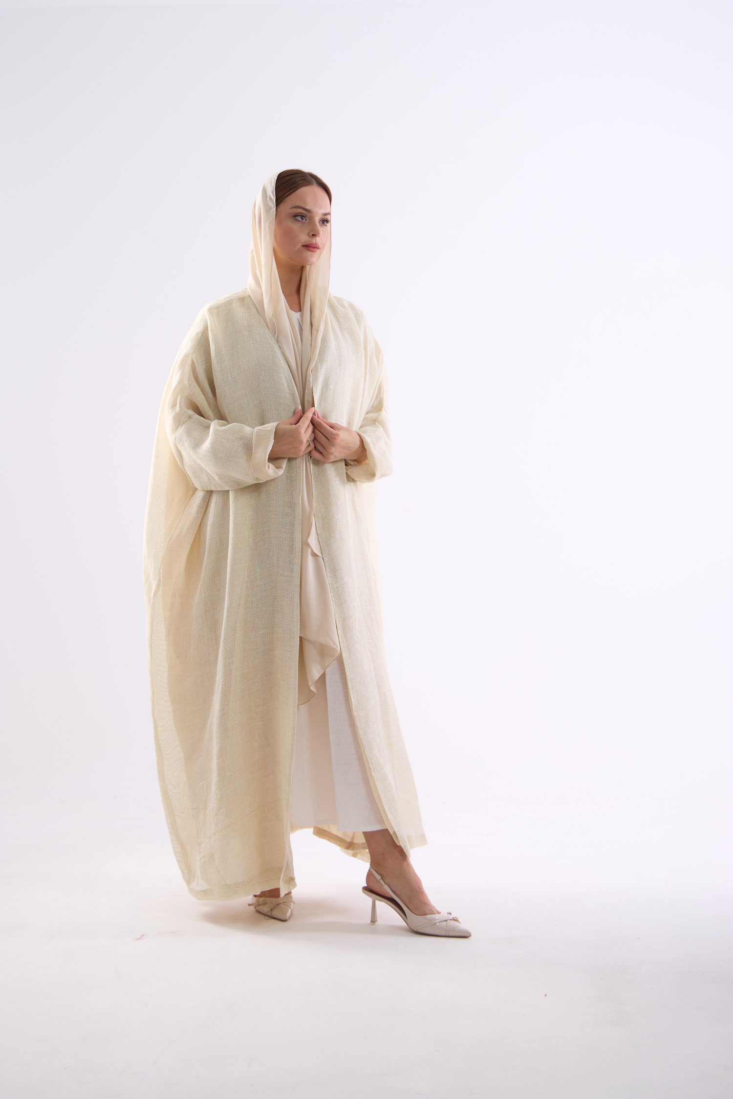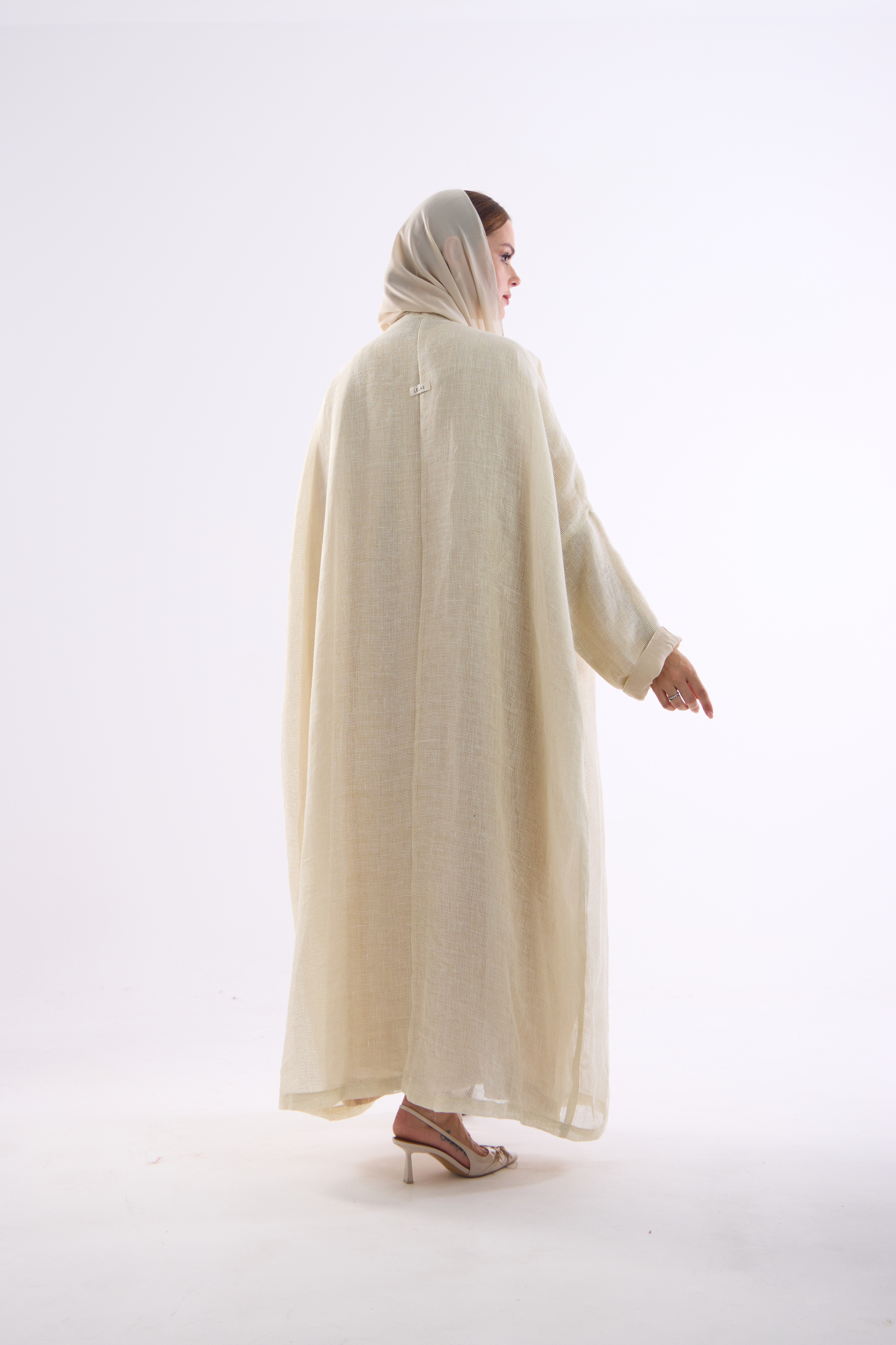BHD 130.000Trendy and stylish with peach linen abaya with handwork details.