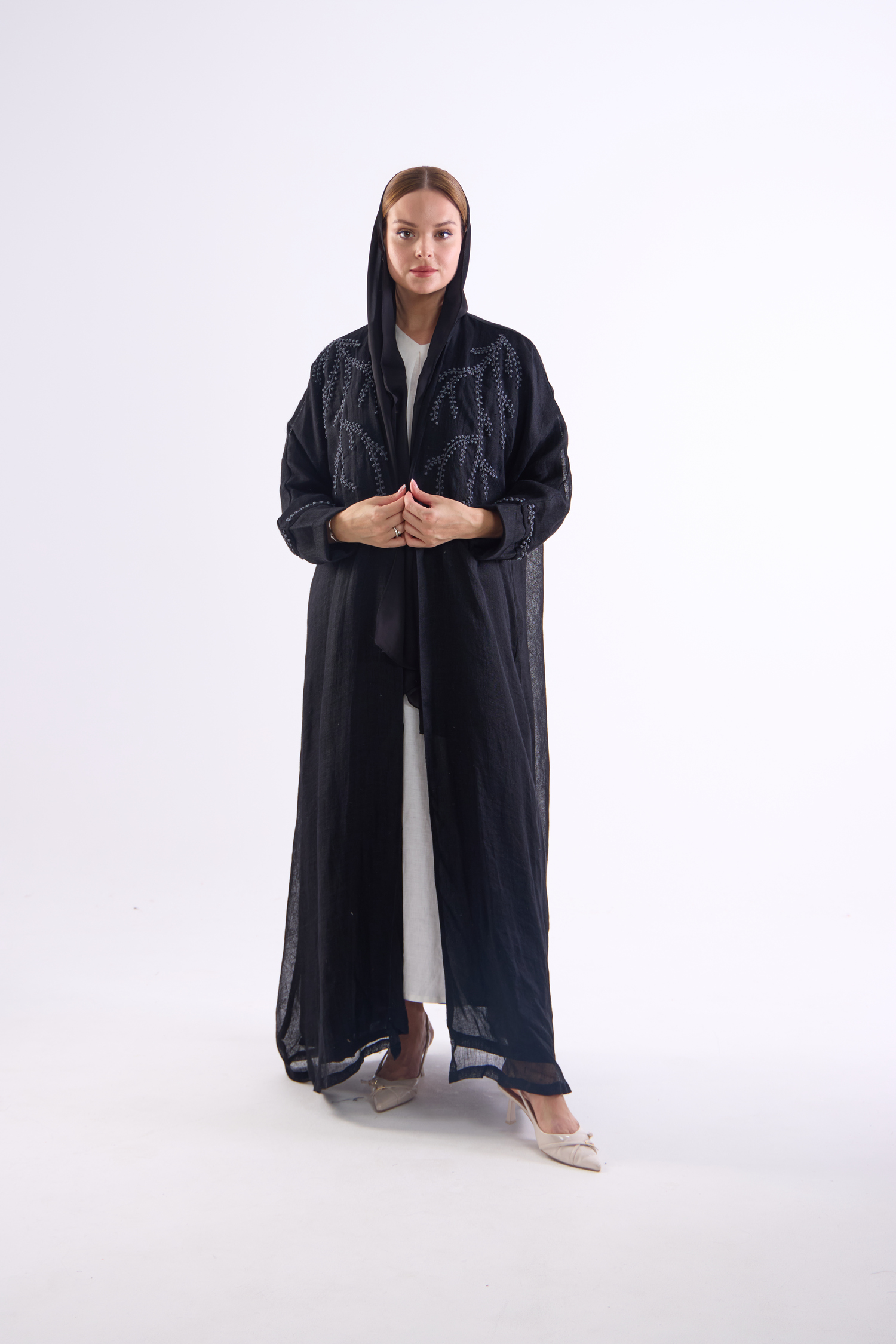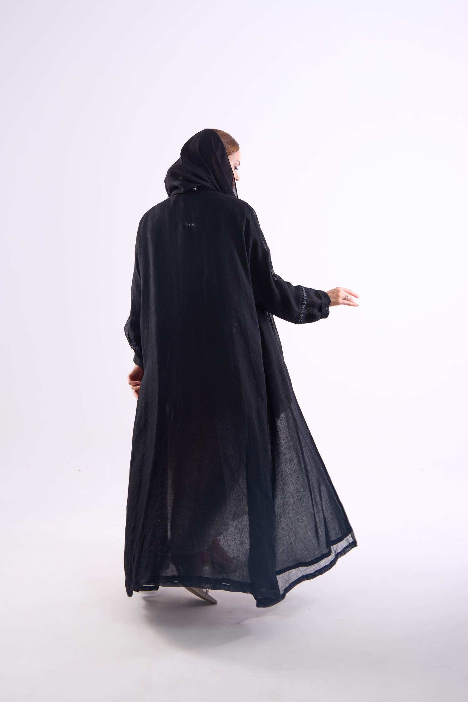 BHD 130.000Beige Linen Abaya With Handwork Embroidery Details From Shoulders Till Waist With Lining