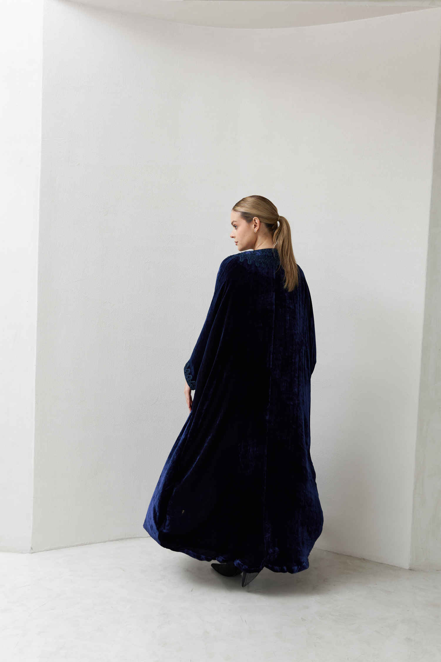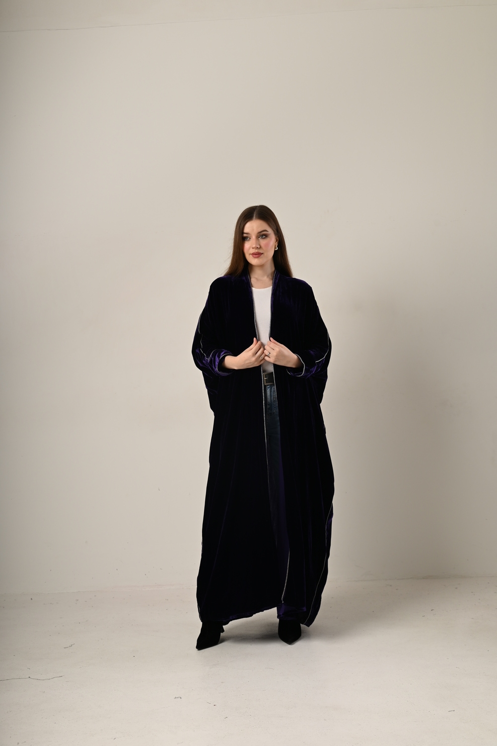 BHD 90.000Abaya of warm Italian velvet fabric made of luxurious silk threads – wide and open design, with narrow sleeves, elegant in wear that expresses your elegance. Comes with a headscarf