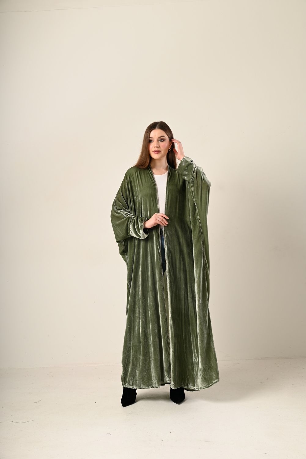 BHD 90.000Abaya of warm Italian velvet fabric made of luxurious silk threads – wide and open design, with narrow sleeves, elegant in wear that expresses your elegance. Comes with a headscarf