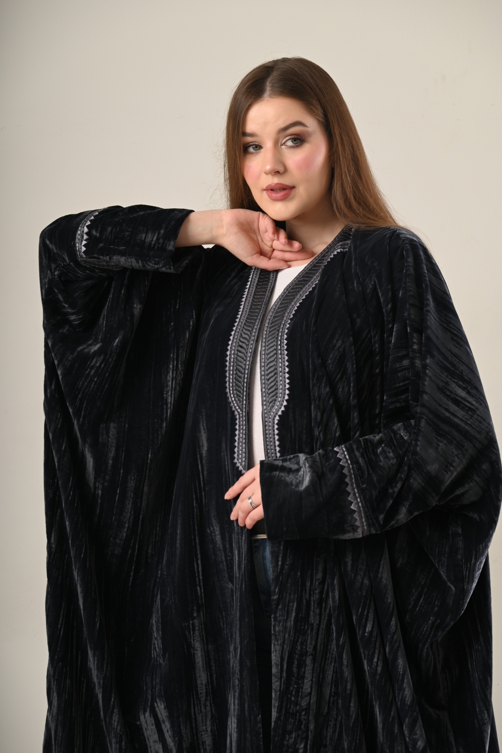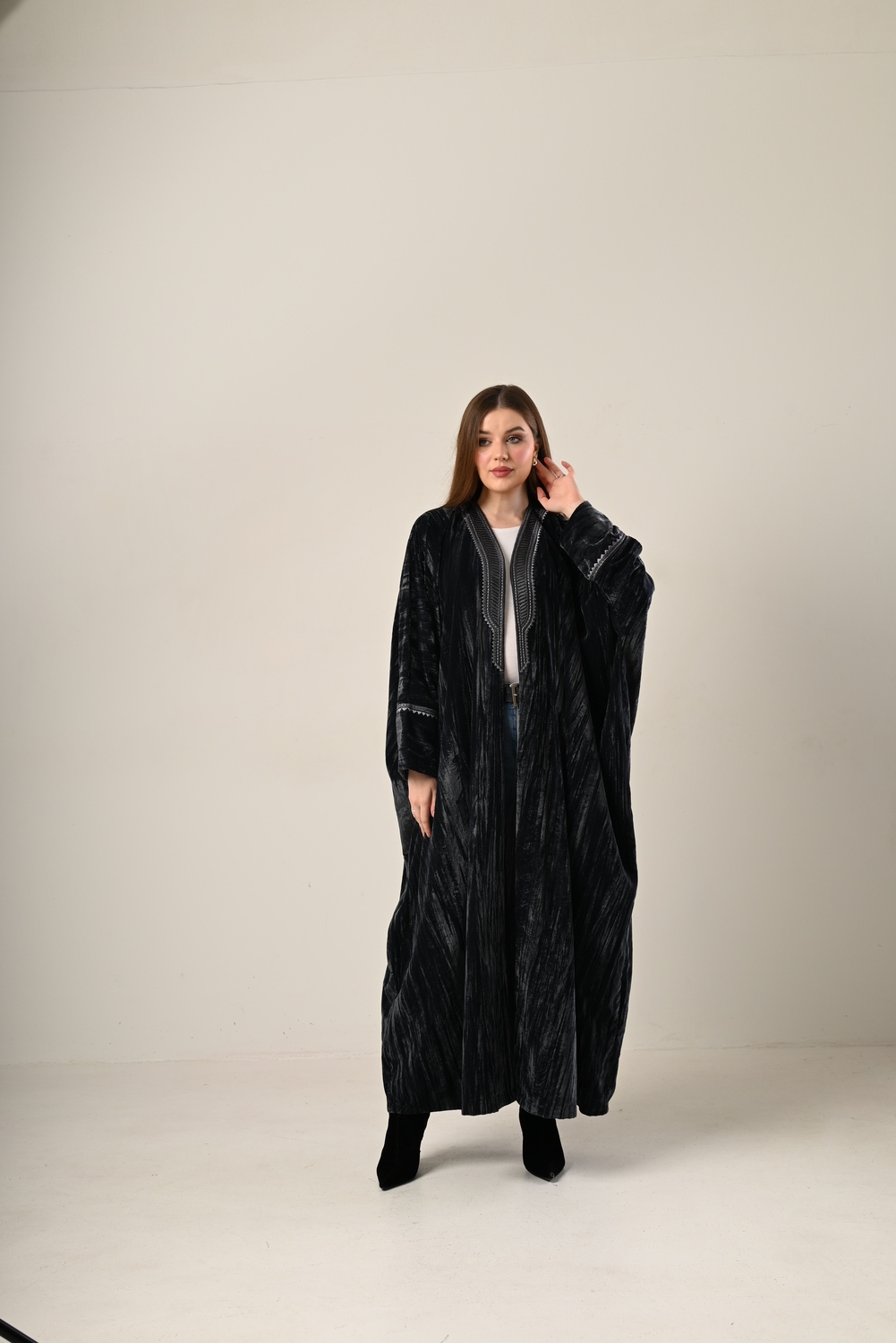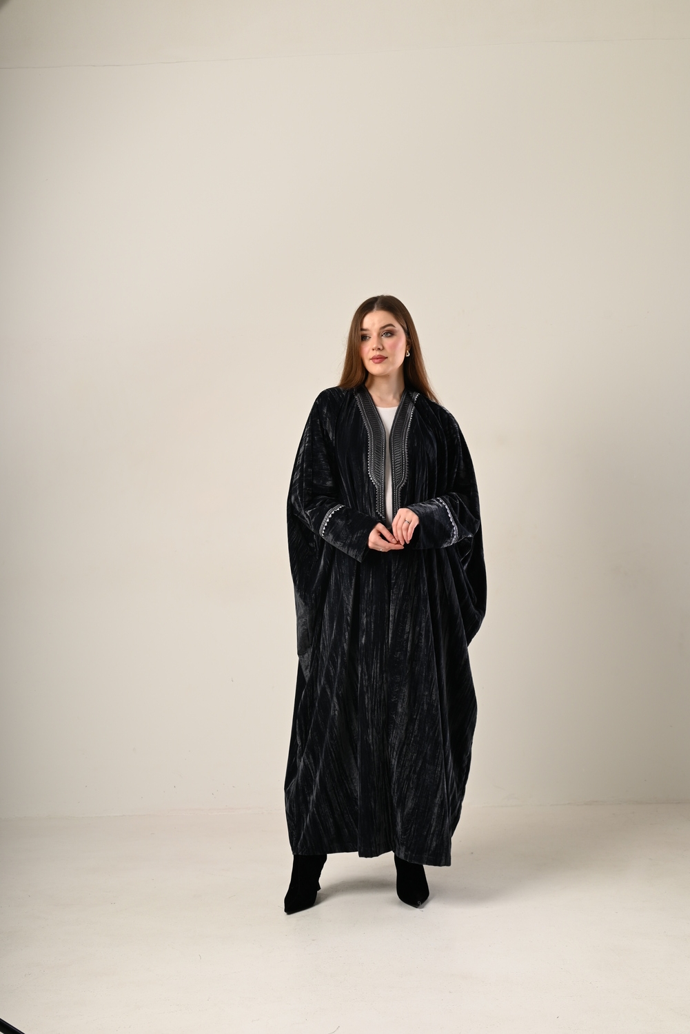 BHD 90.000Abaya of warm Italian velvet fabric made of luxurious silk threads – wide and open design, with narrow sleeves, elegant in wear that expresses your elegance. Comes with a headscarf