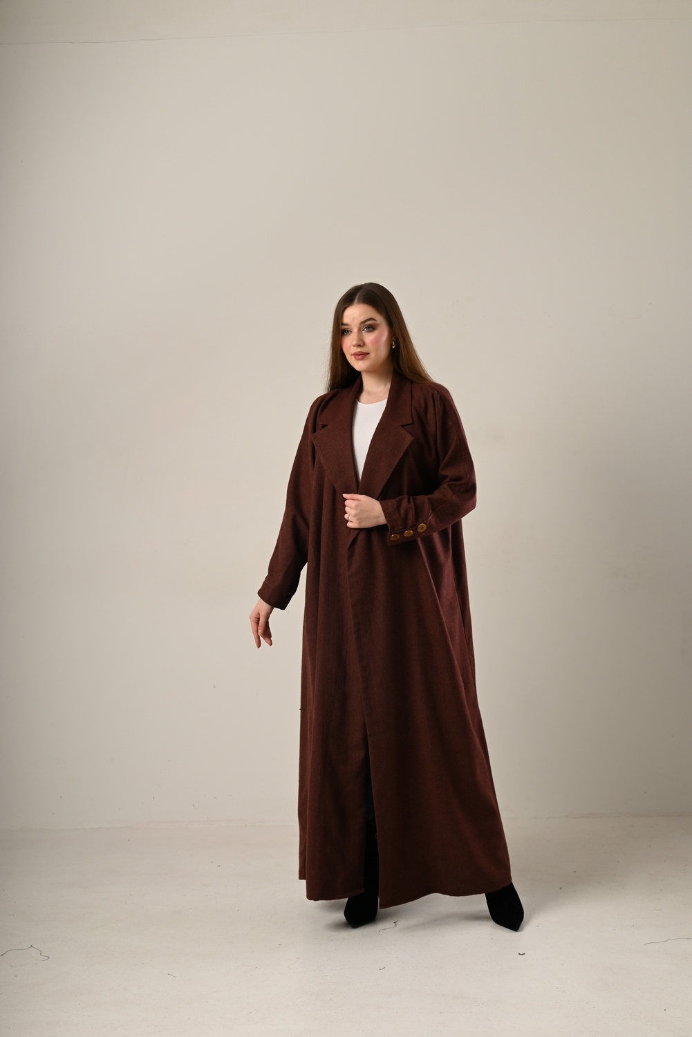 BHD 90.000Abaya of warm Italian velvet fabric made of luxurious silk threads – wide and open design, with narrow sleeves, elegant in wear that expresses your elegance. Comes with a headscarf