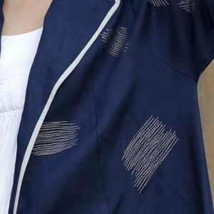 BHD 130.000Cool And Casual With Jacket Model Navy Blue Abaya with white embroidery.