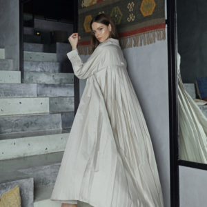 Crushed Cotton Light Violet Abaya With Machine Embroidery Details Over The Shoulders Till Waist
