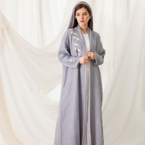 BHD 130.000stylish and trendy with grey linen abaya with hand work details.