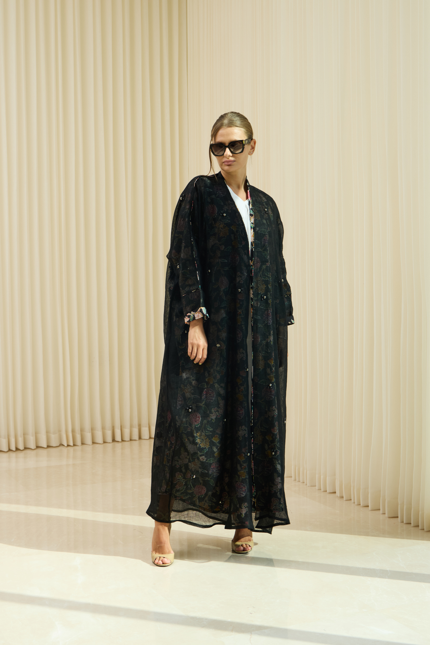 BHD 130.000cheeky and elegant with black linen embroidered abaya.