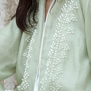 BHD 130.000Chic look with Pastel Pista green french knots abaya