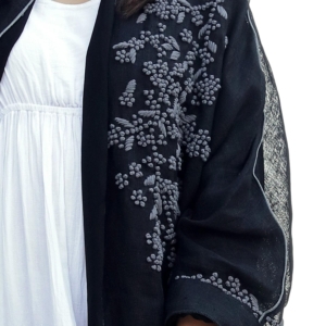 BHD 130.000Cool And Classy With Black Linen French knots Embroidery Abaya.