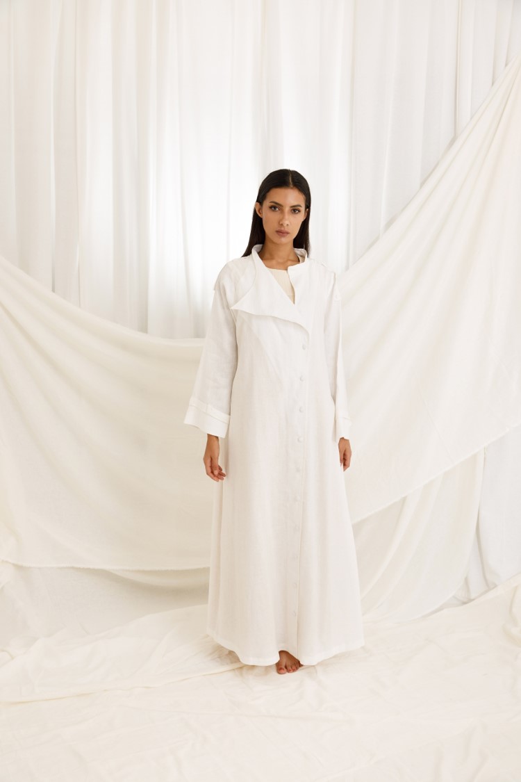 BHD 130.000olive green two tone linen abayas with braided details across the edges and sleeves and tassel details
