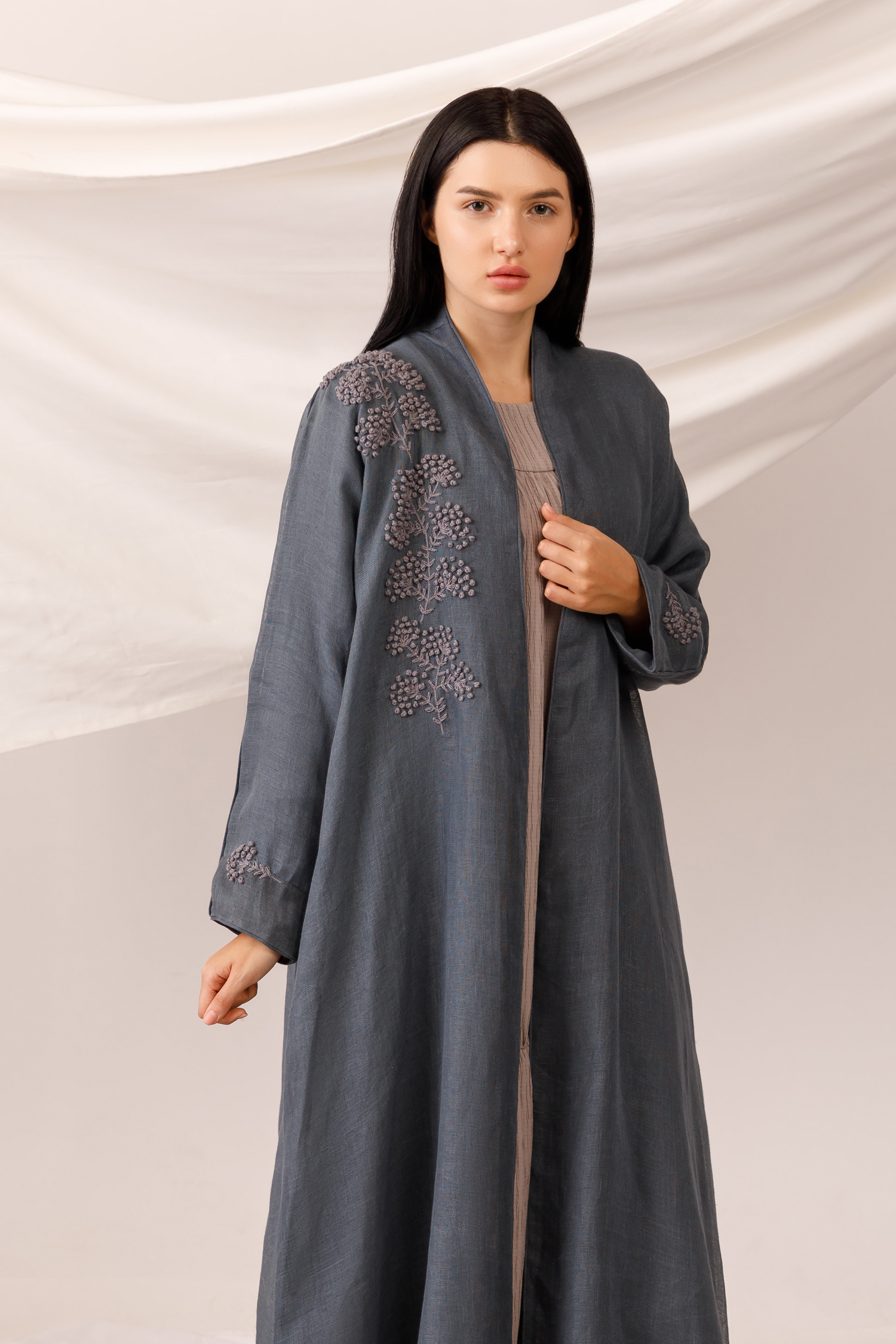 BHD 130.000Stylish and dashing in French knot spread linen abaya.