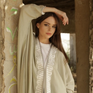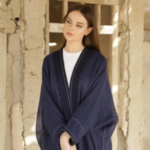 BHD 90.000Abaya of warm Italian velvet fabric made of luxurious silk threads – wide and open design, with narrow sleeves, elegant in wear that expresses your elegance. Comes with a headscarf