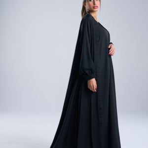 Soft and elegant linen abaya with computer empridory on front and end of the sleeves