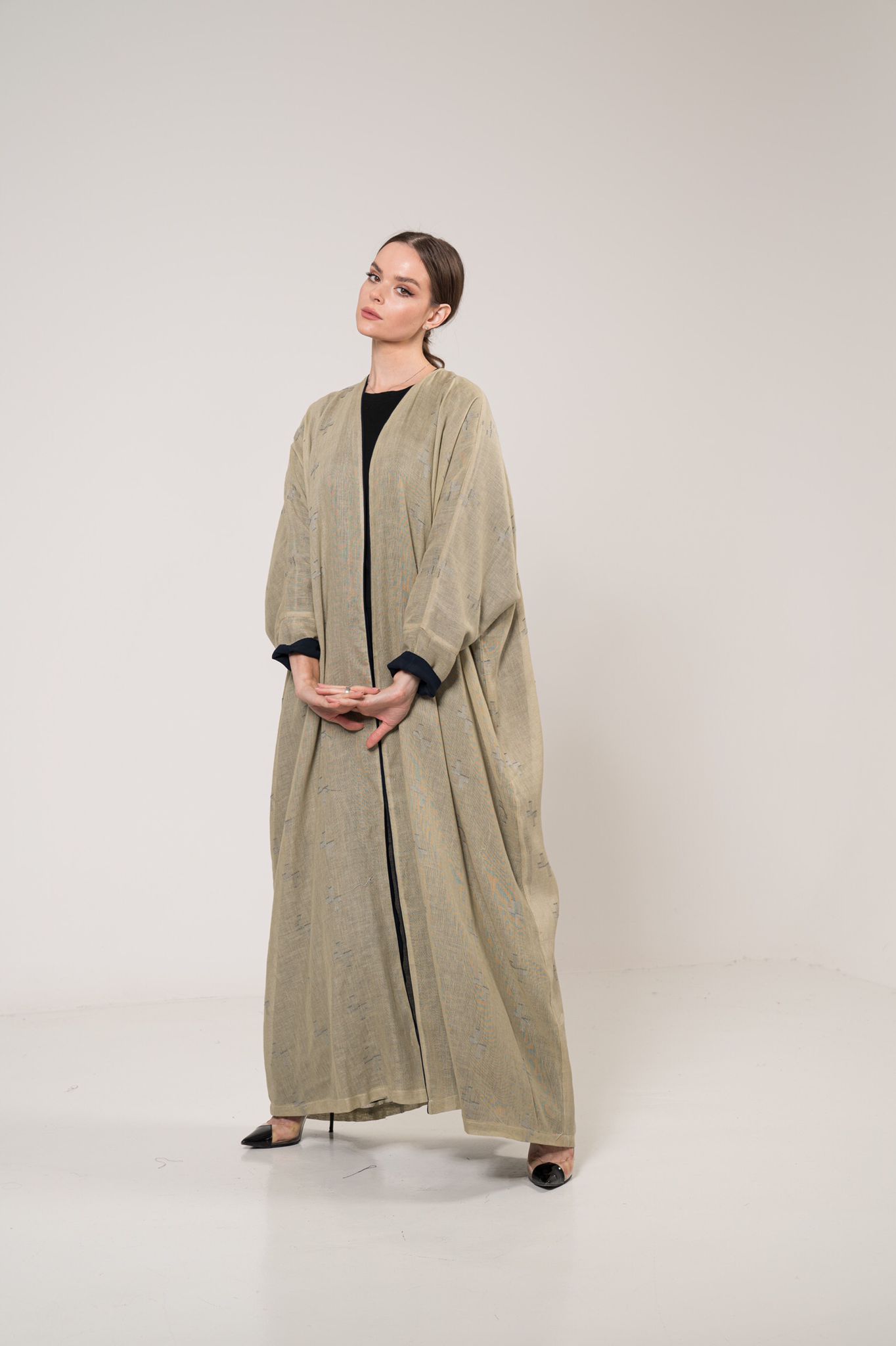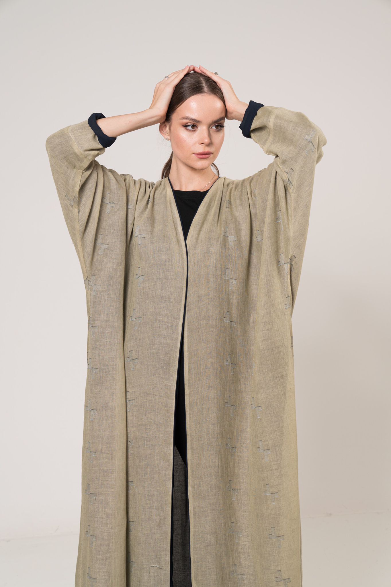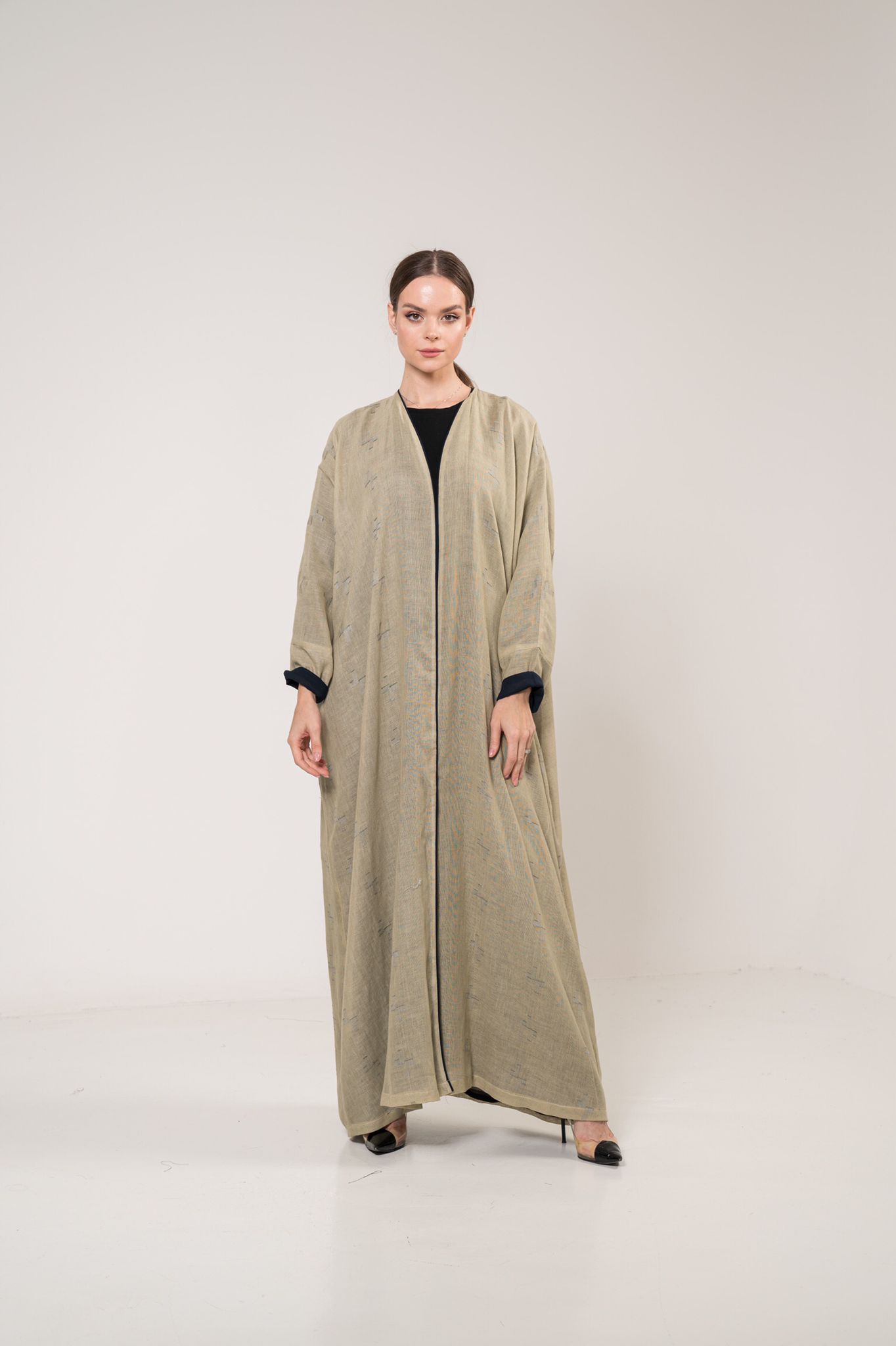 BHD 130.000Casual and cool with beige linen abaya with statement handwork