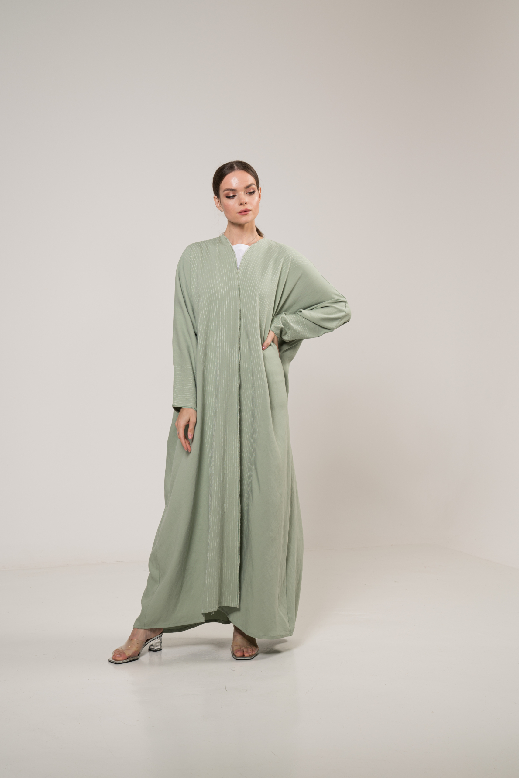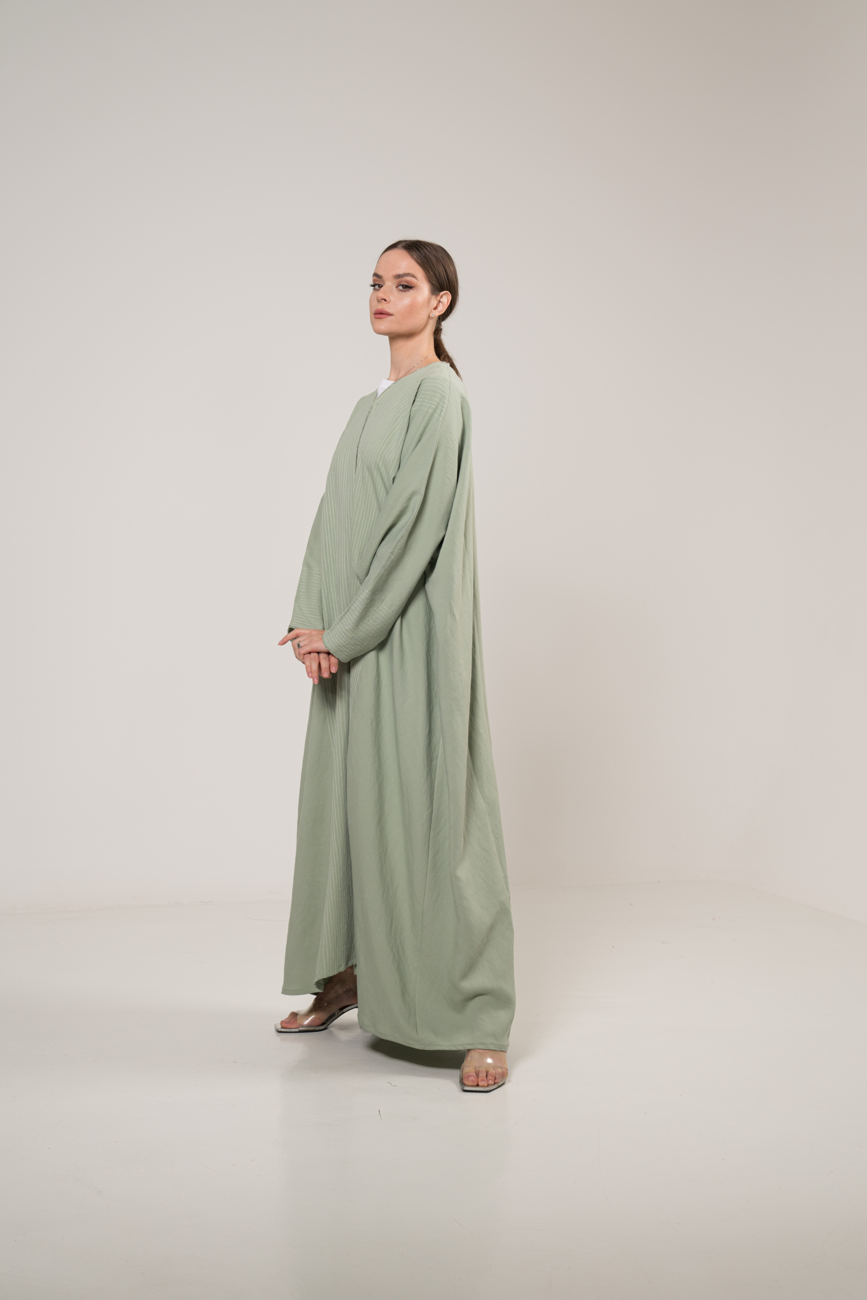BHD 130.000olive green two tone linen abayas with braided details across the edges and sleeves and tassel details