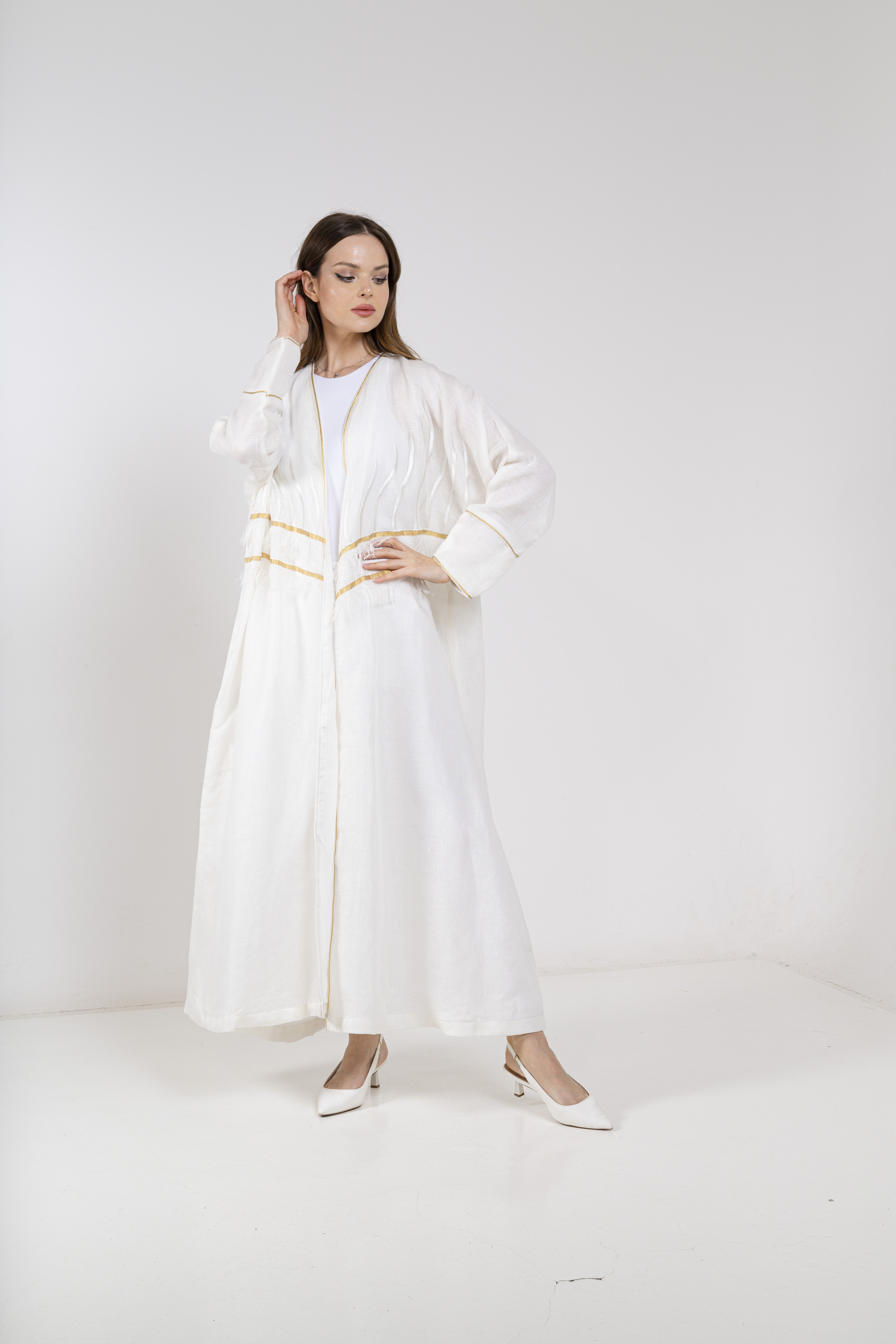 BHD 130.000Stylish and dashing in French knot spread linen abaya.