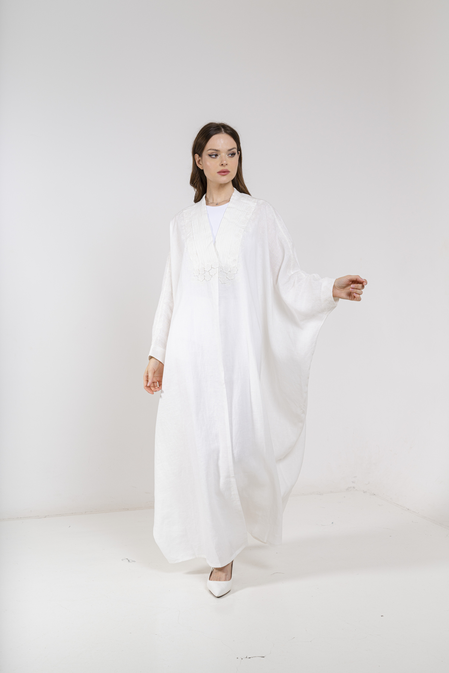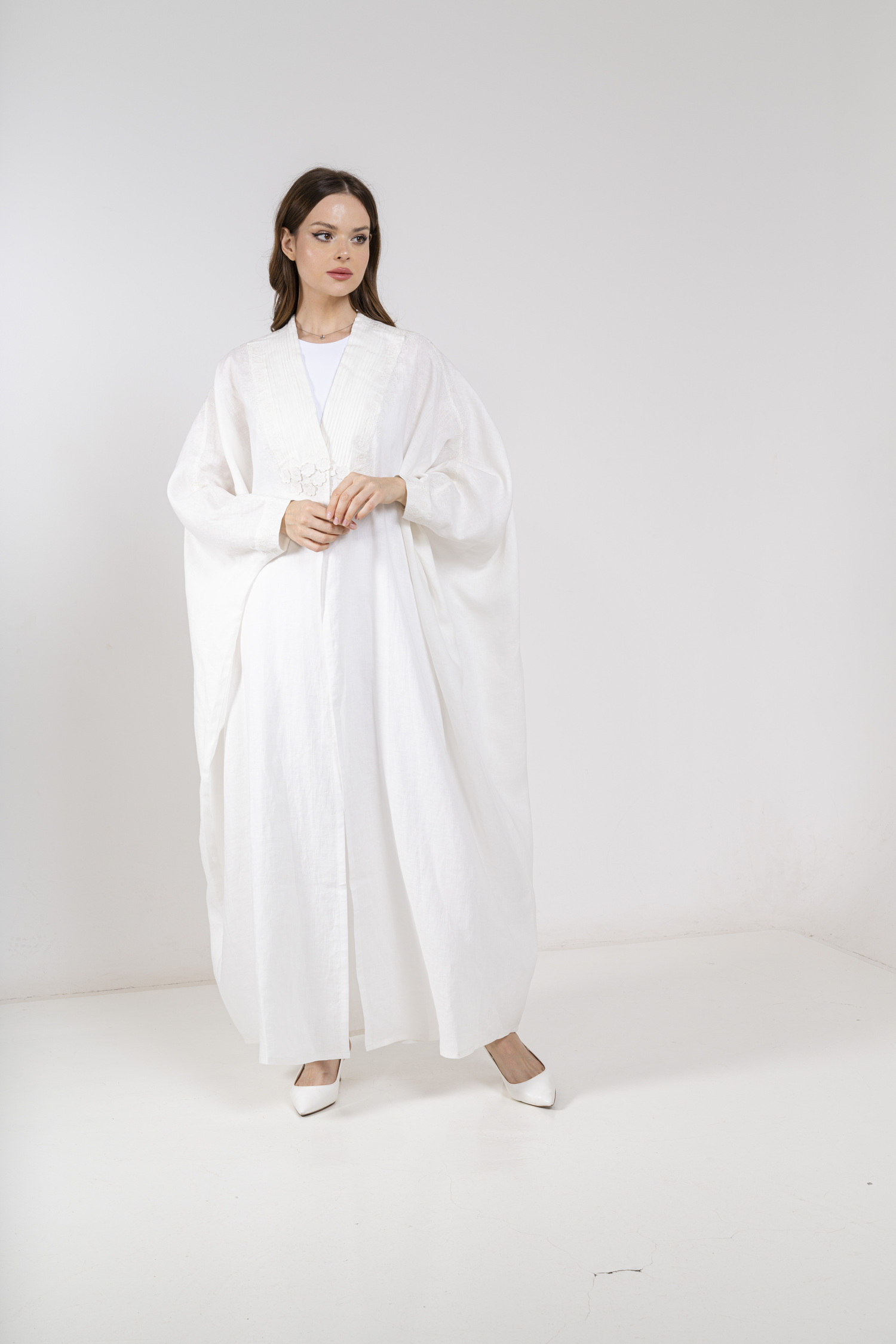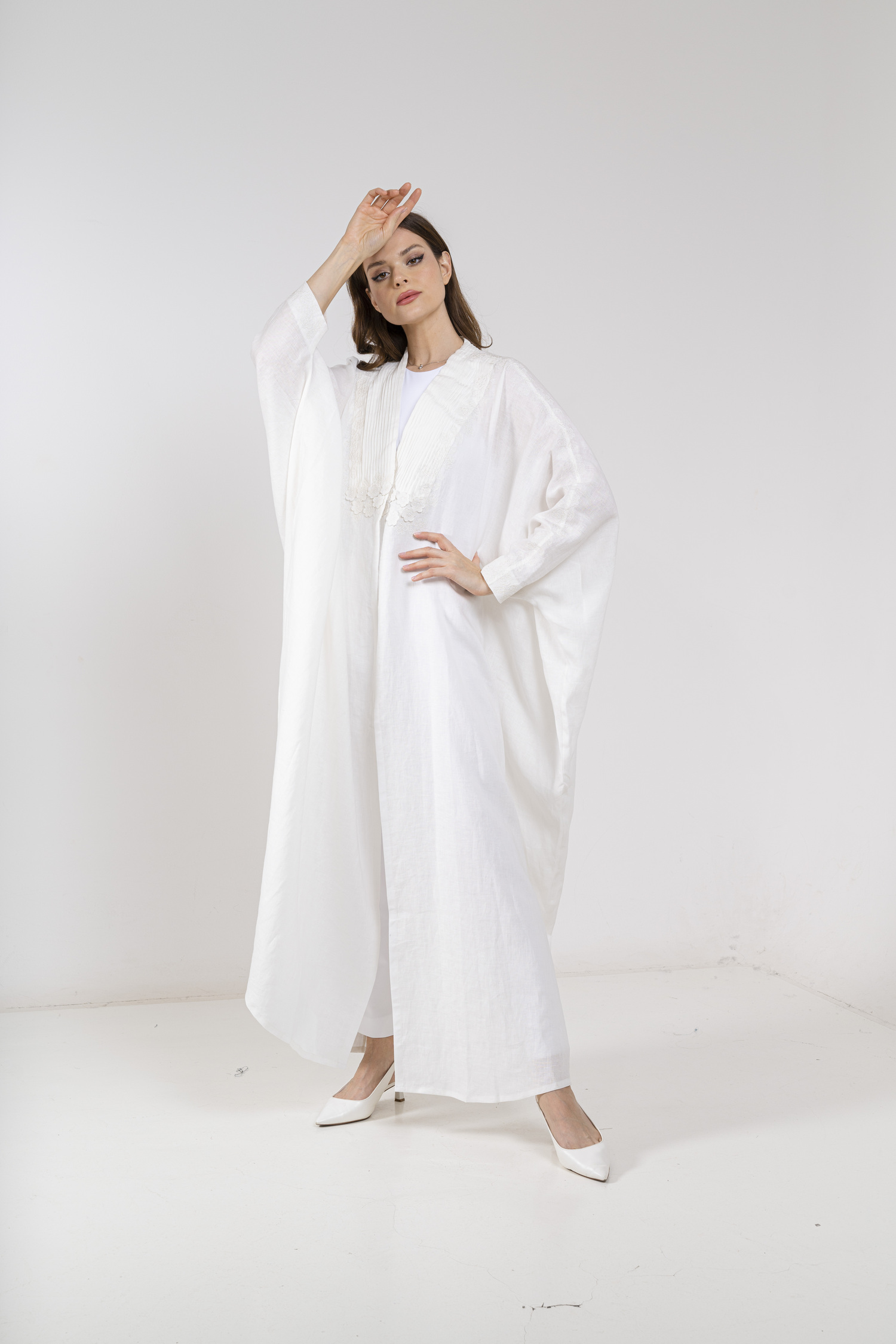The Italian Linen Abaya is one of the finest types of Linen, a cotton fabric that is characterized by lightness and softness, giving a sense of coolness and comfort and does not cause skin irritation due to its softness on the skin