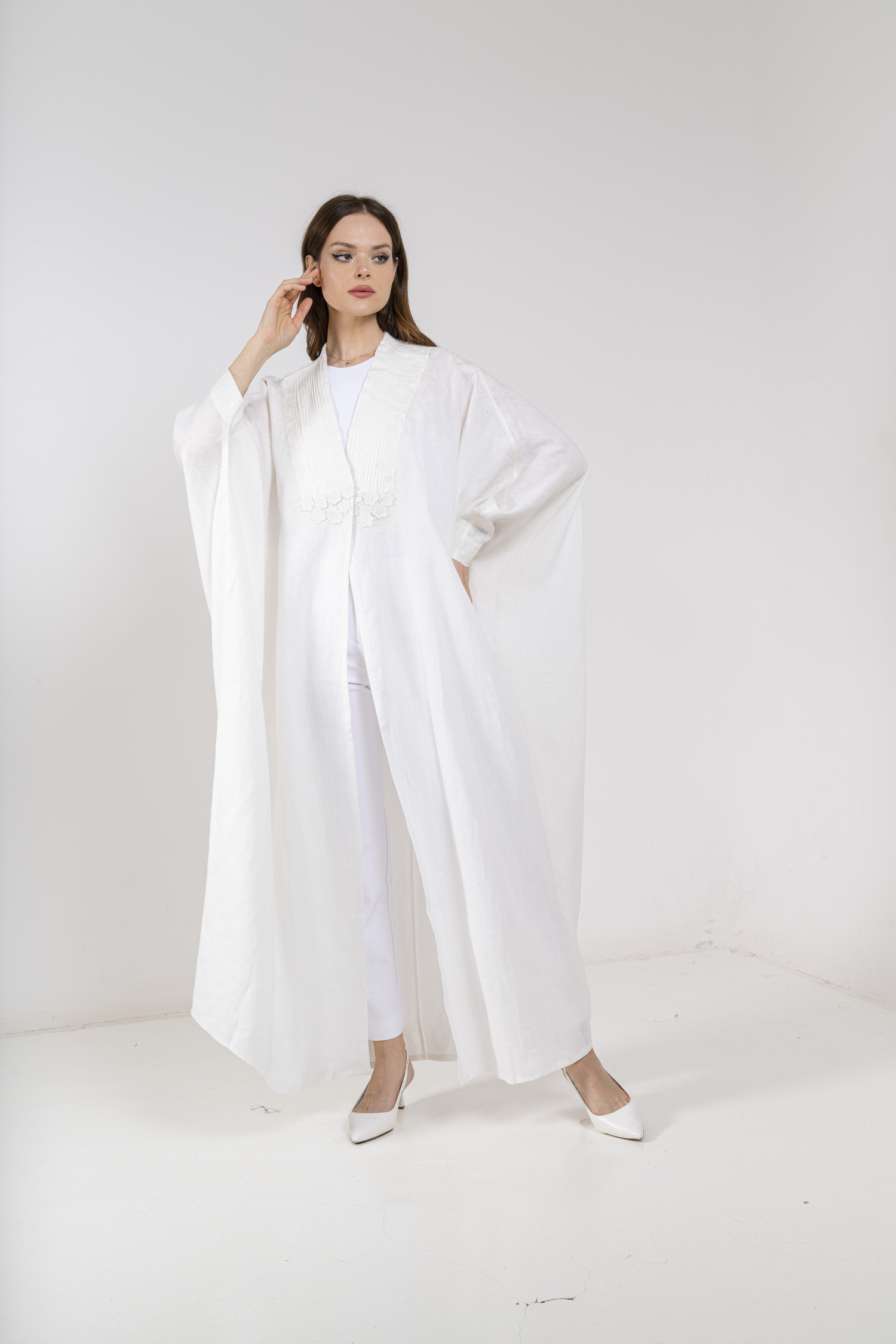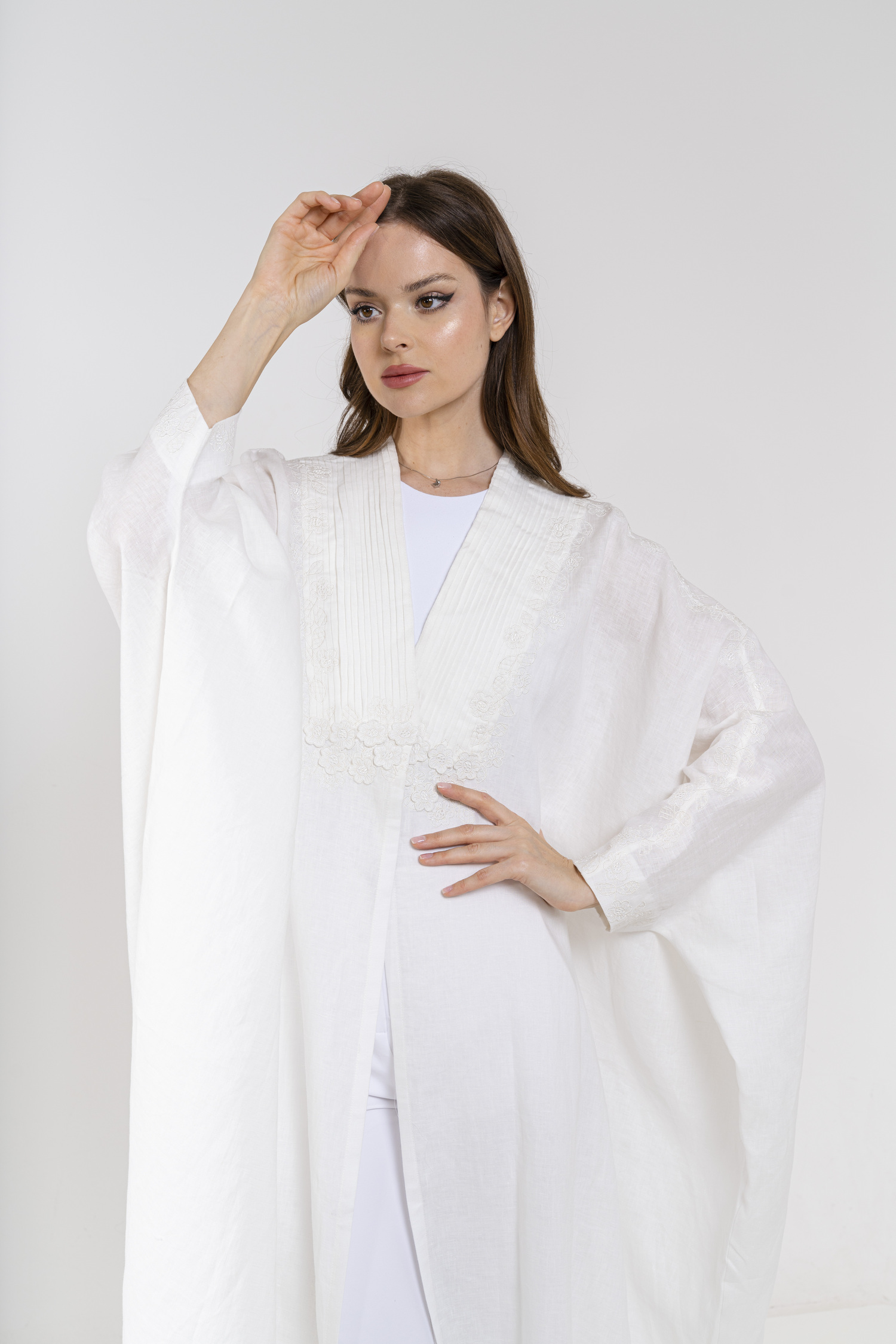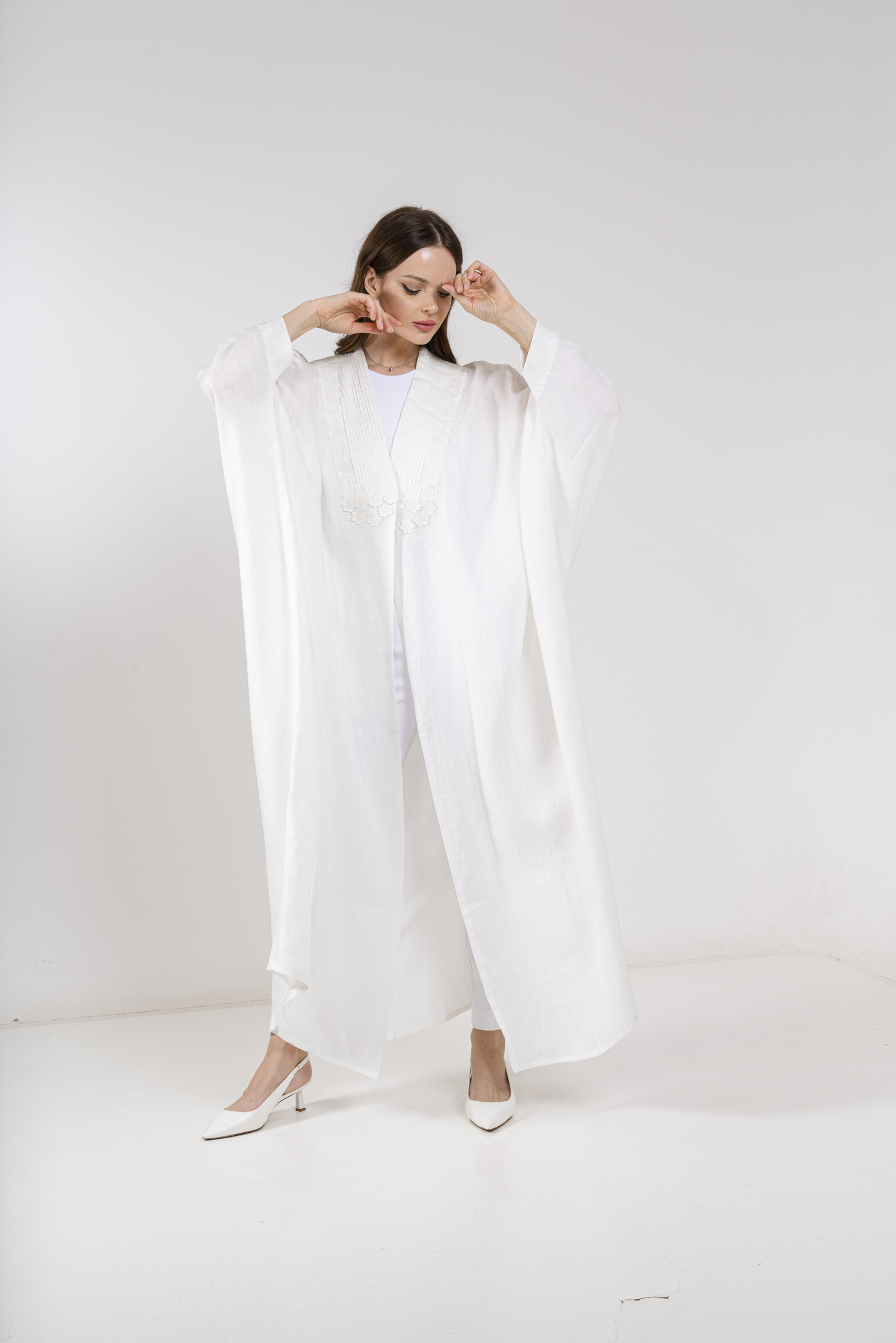 The Italian Linen Abaya is one of the finest types of Linen, a cotton fabric that is characterized by lightness and softness, giving a sense of coolness and comfort and does not cause skin irritation due to its softness on the skin