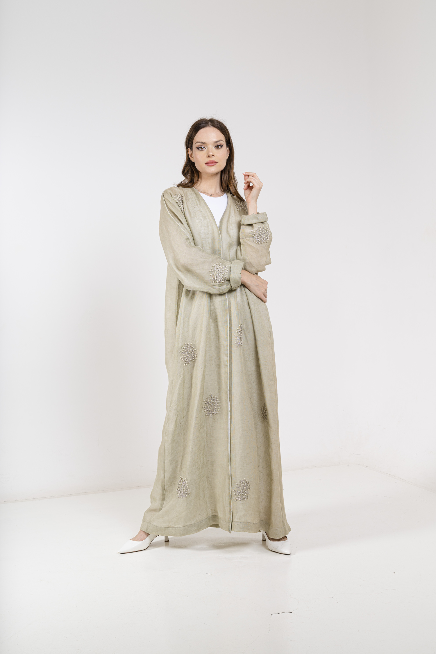 BHD 130.000Stylish and trendy with linen abaya with hand work details.