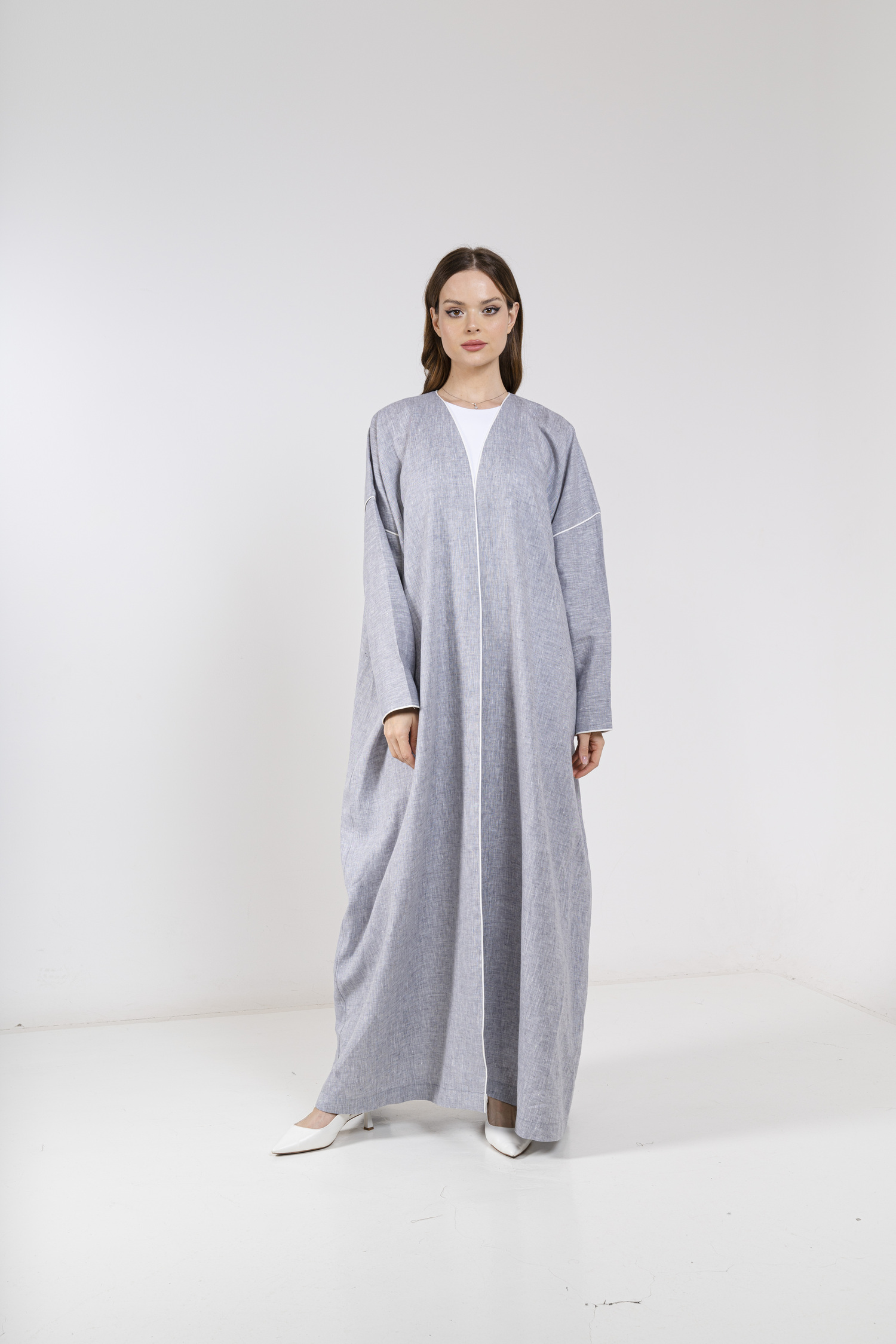 The Italian Linen Abaya is one of the finest types of Linen, a cotton fabric that is characterized by lightness and softness, giving a sense of coolness and comfort and does not cause skin irritation due to its softness on the skin