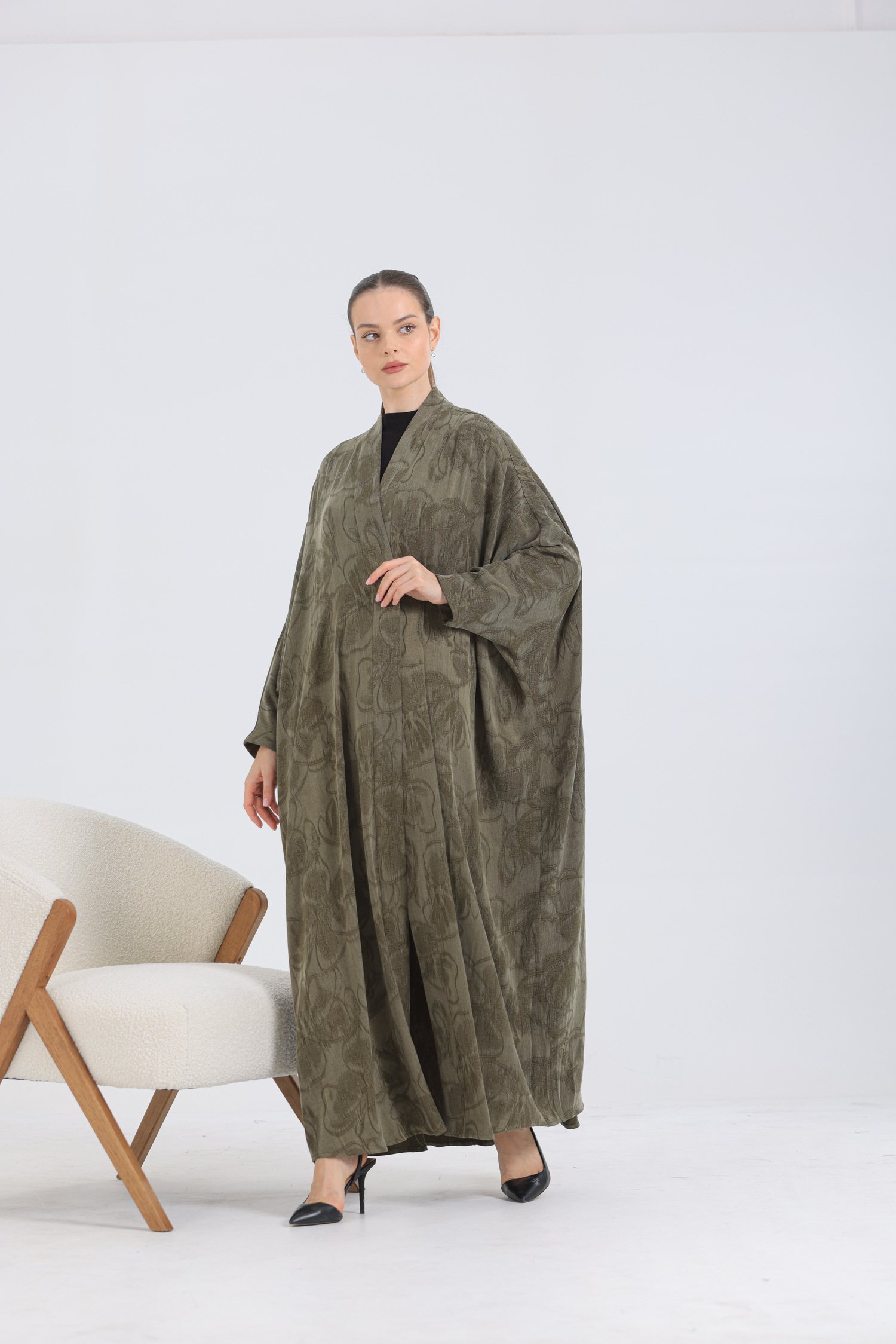 Linen washed Abaya, treated with sand crystals to have a matte appearance and mixed with soft cotton threads to increase the softness of the fabric. It has openings between its tissues that create an outlet for air to pass through, giving the skin room to breathe. Less wrinkle and wrinkle while still being distinctive and functional – a roomy open design with slightly flared sleeves. Comes with a headscarf