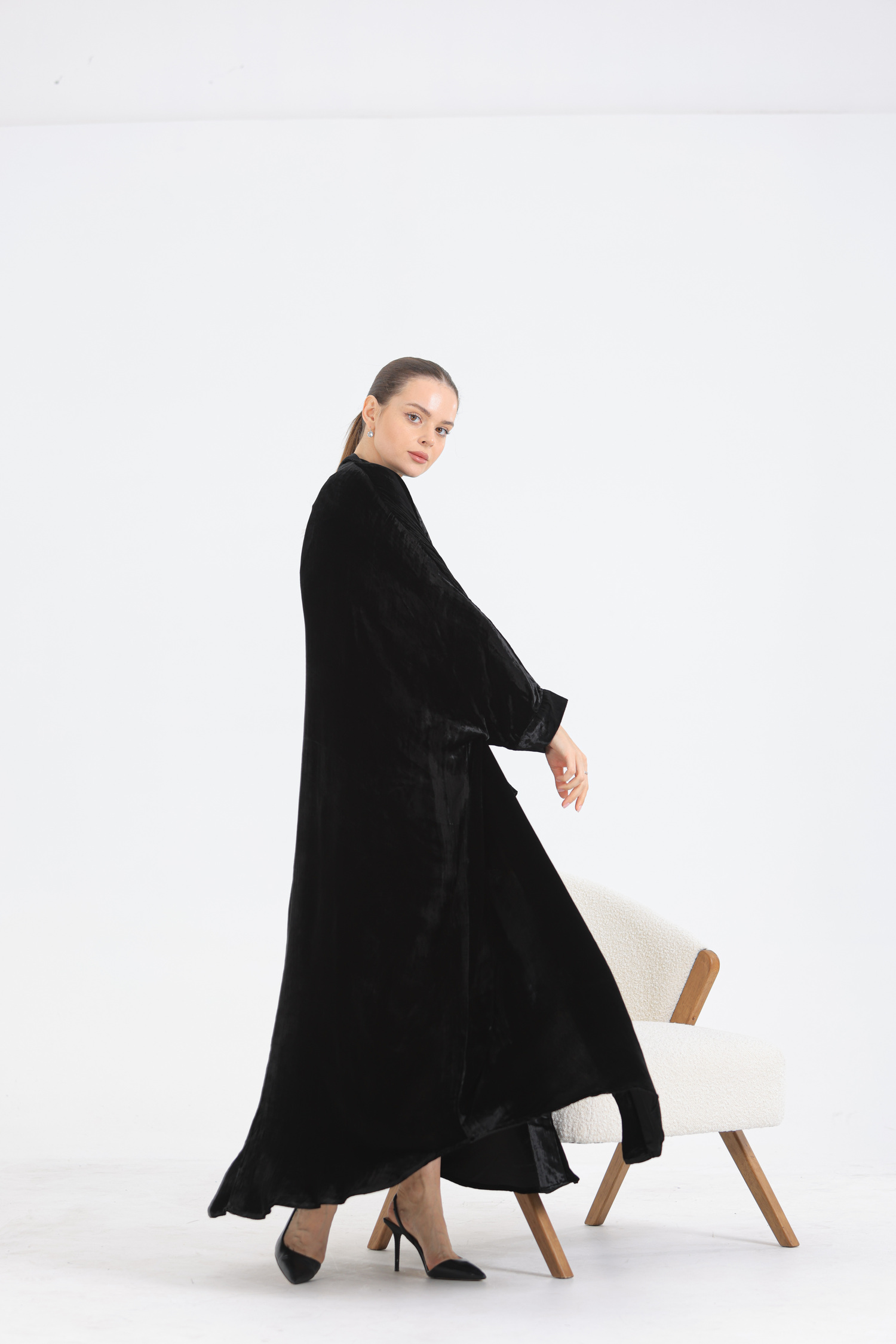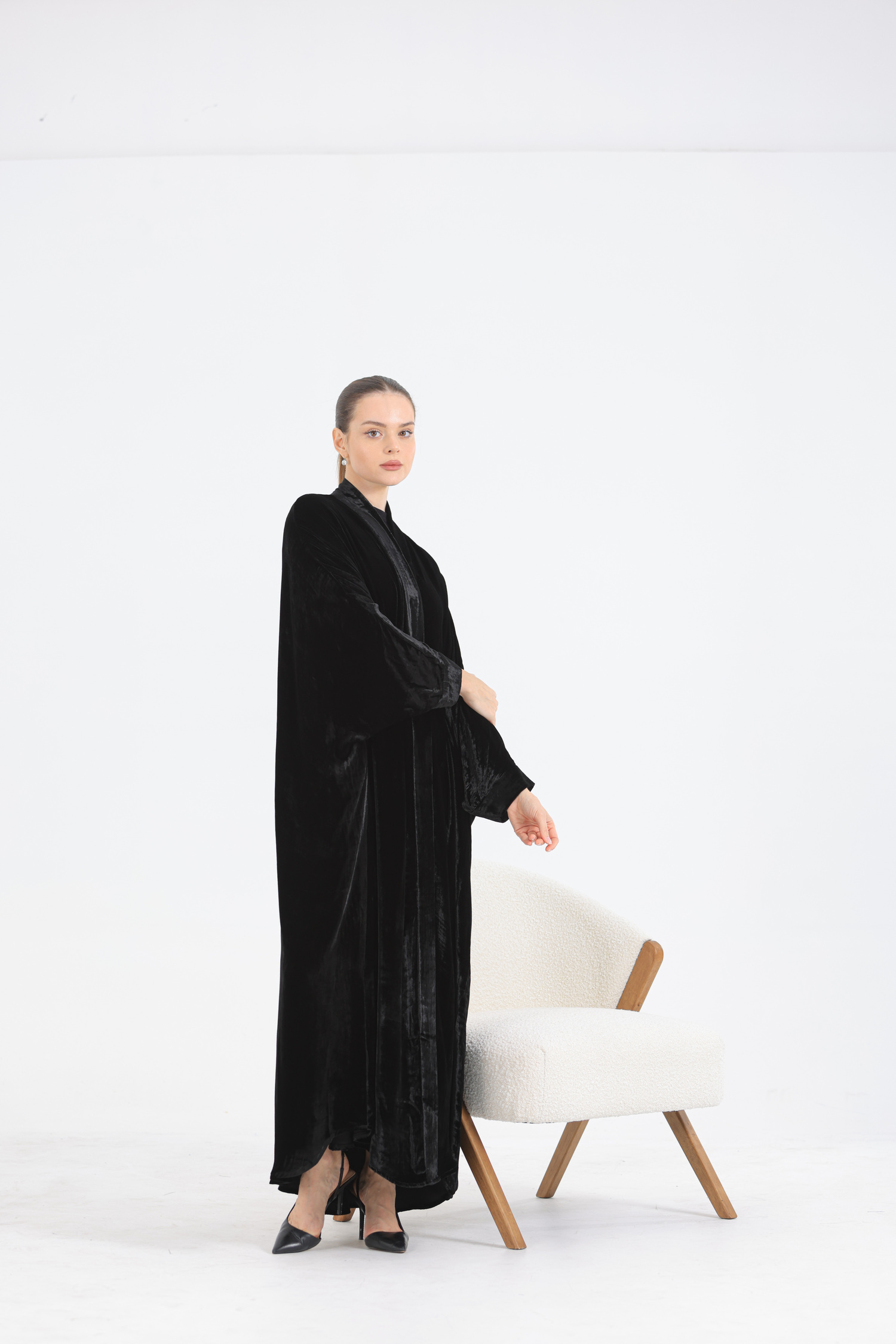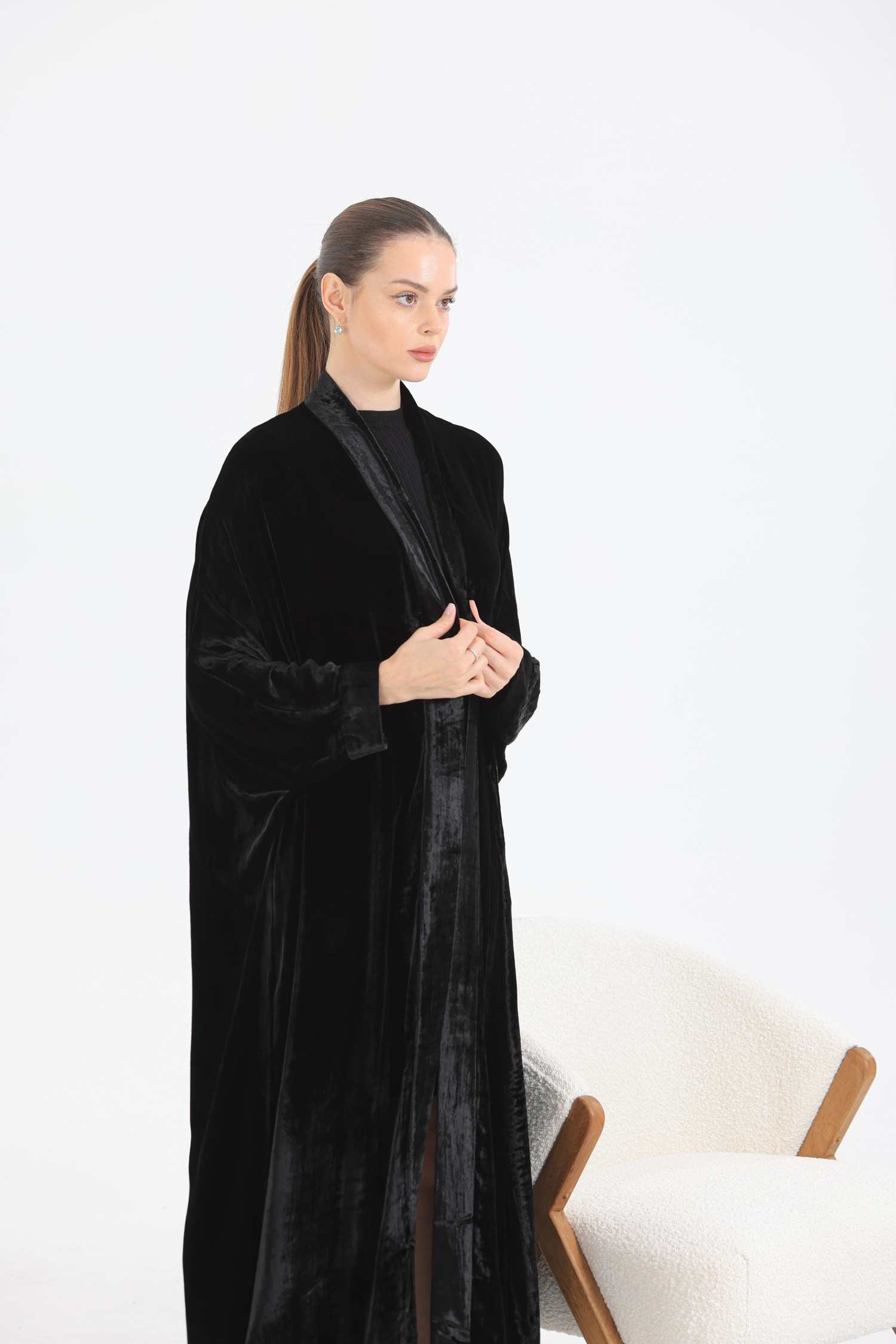 Abaya of warm Italian velvet fabric made of luxurious silk threads – wide and open design, with narrow sleeves, elegant in wear that expresses your elegance. Comes with a headscarf