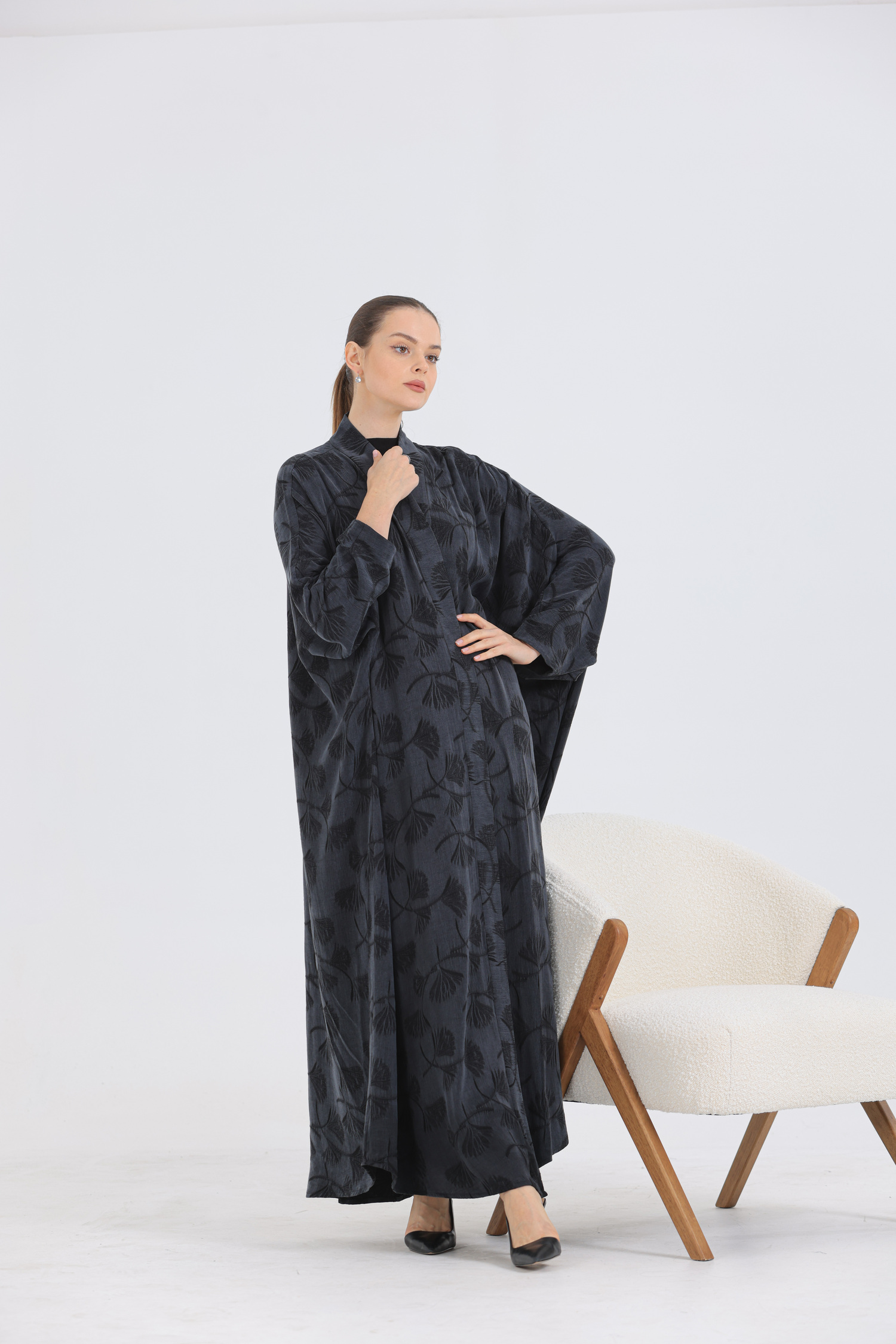 BHD 90.000Abaya of warm Italian velvet fabric made of luxurious silk threads – wide and open design, with narrow sleeves, elegant in wear that expresses your elegance. Comes with a headscarf