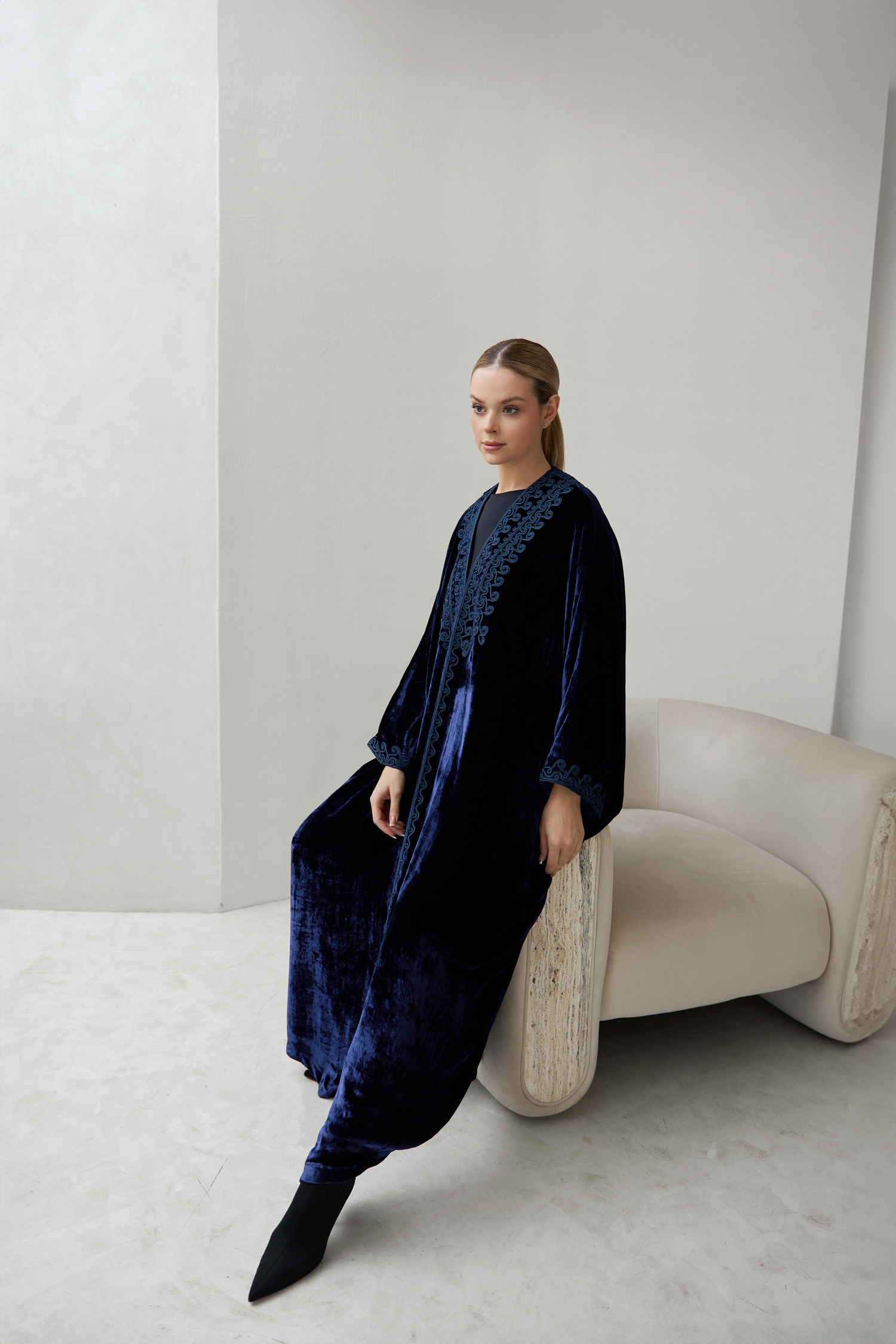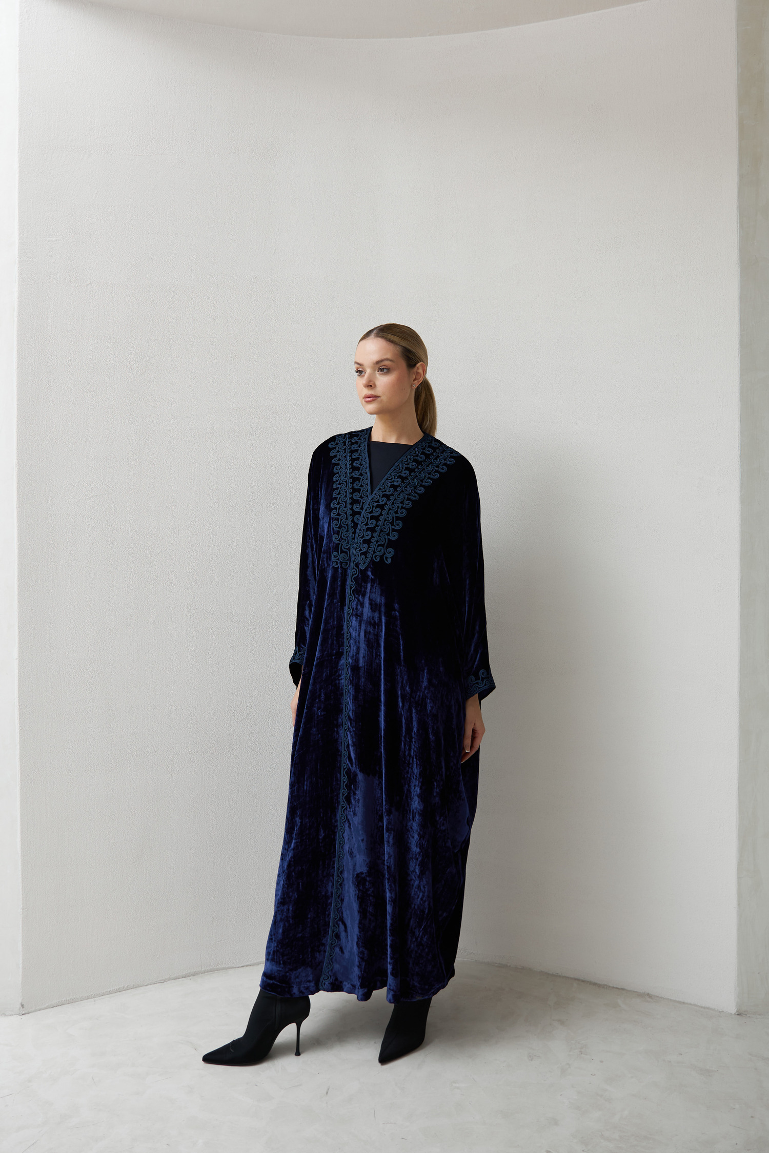 Embroidery in front velvet abaya with lining, Free cut Abaya
