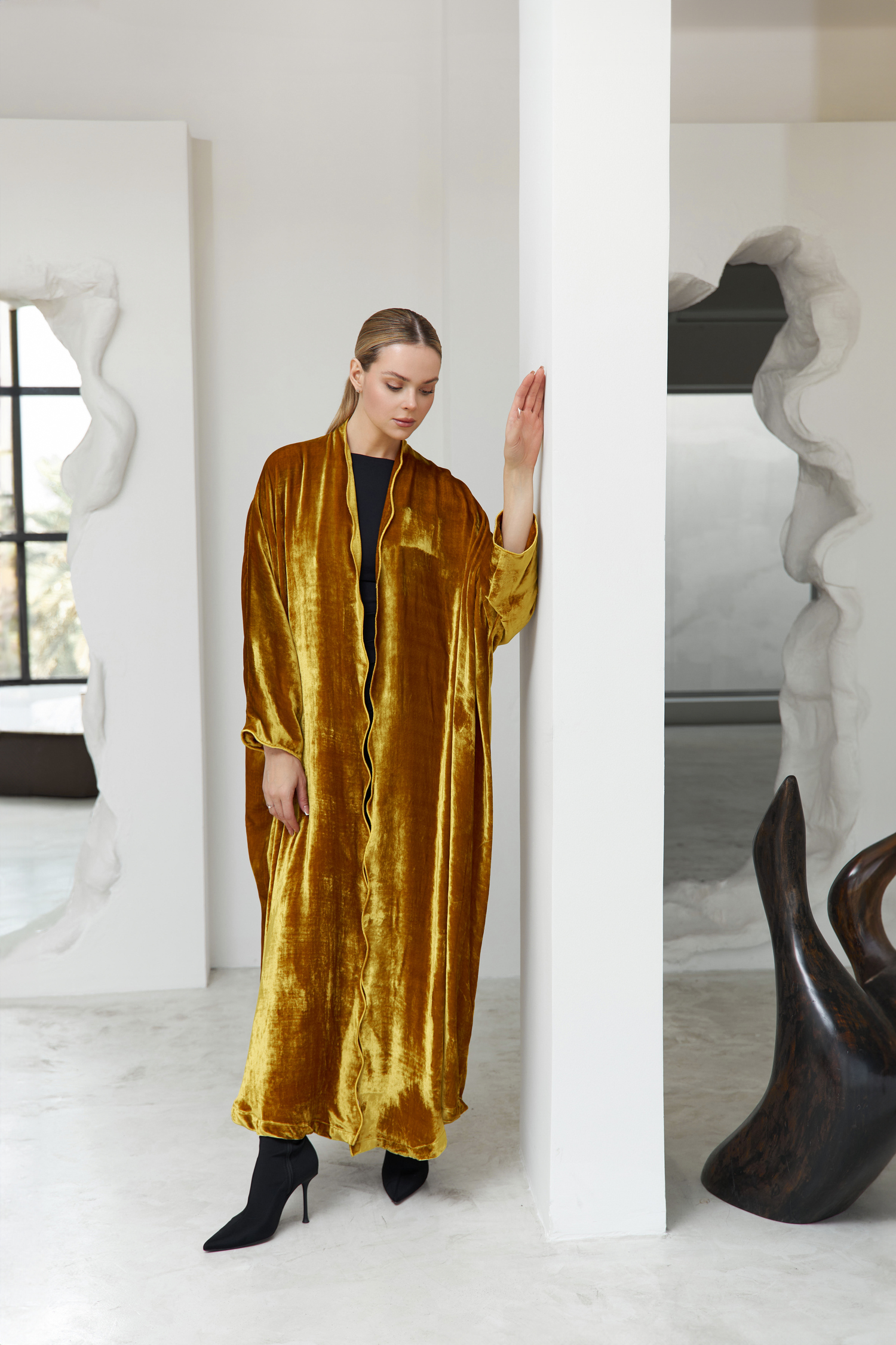 Wavy lines Embroidery on the edge velvet abaya with lining, Free cut abaya