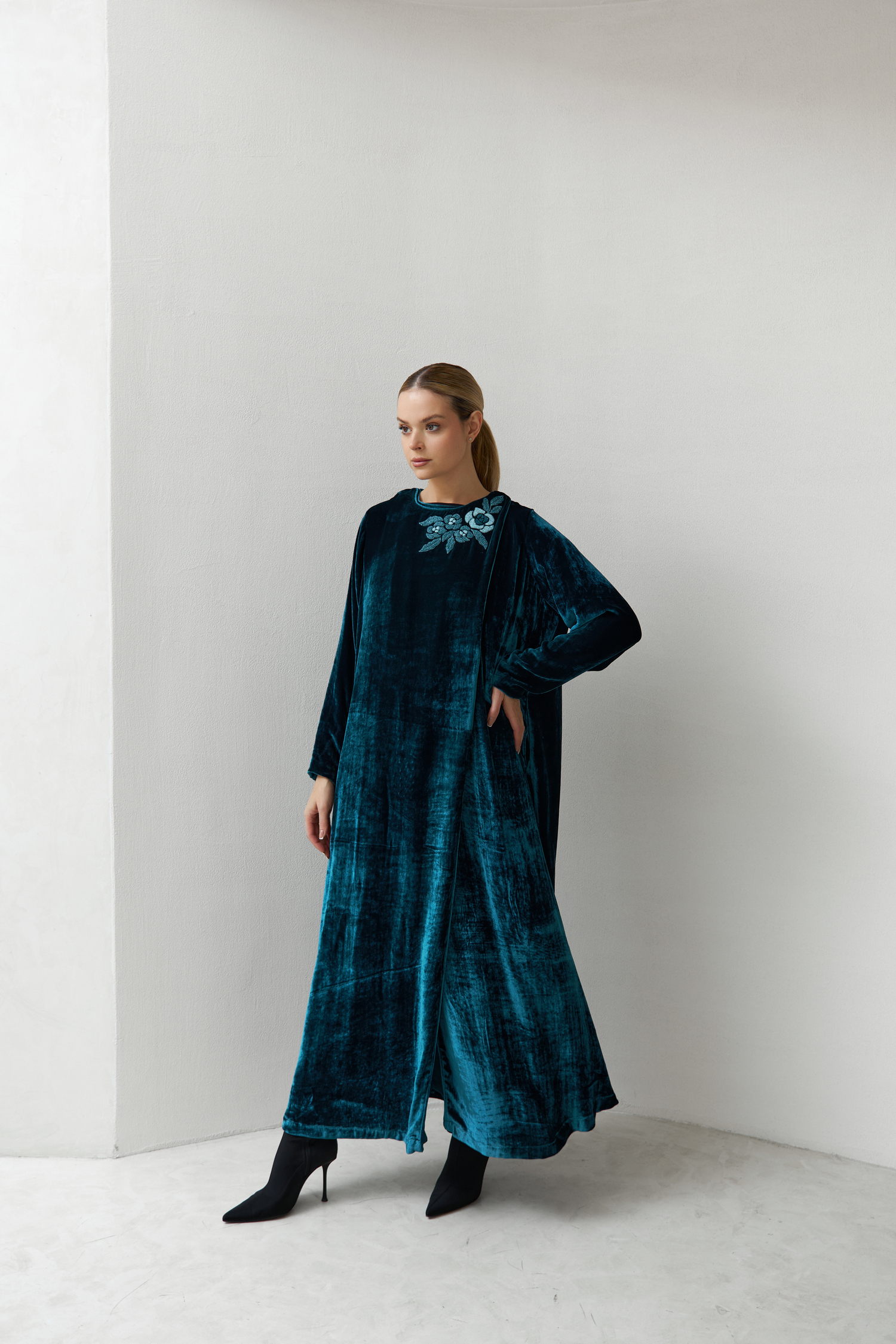 Embroidery in front and one side ,velvet abaya with lining, A cut abaya
