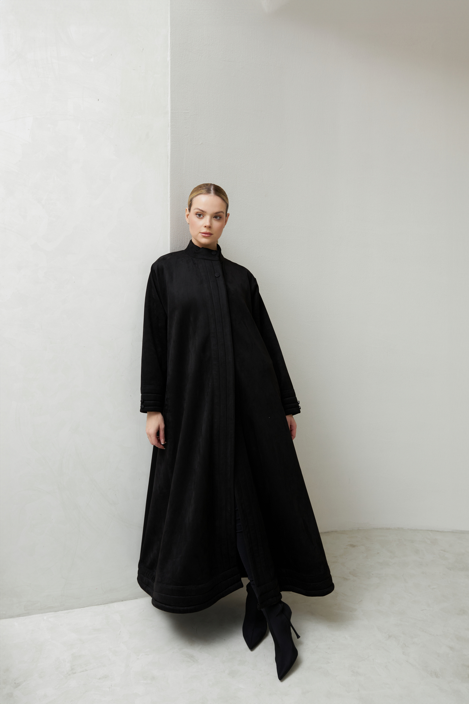 BHD 90.000Abaya of warm Italian velvet fabric made of luxurious silk threads – wide and open design, with narrow sleeves, elegant in wear that expresses your elegance. Comes with a headscarf